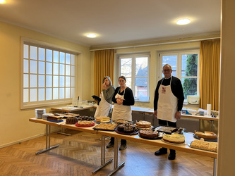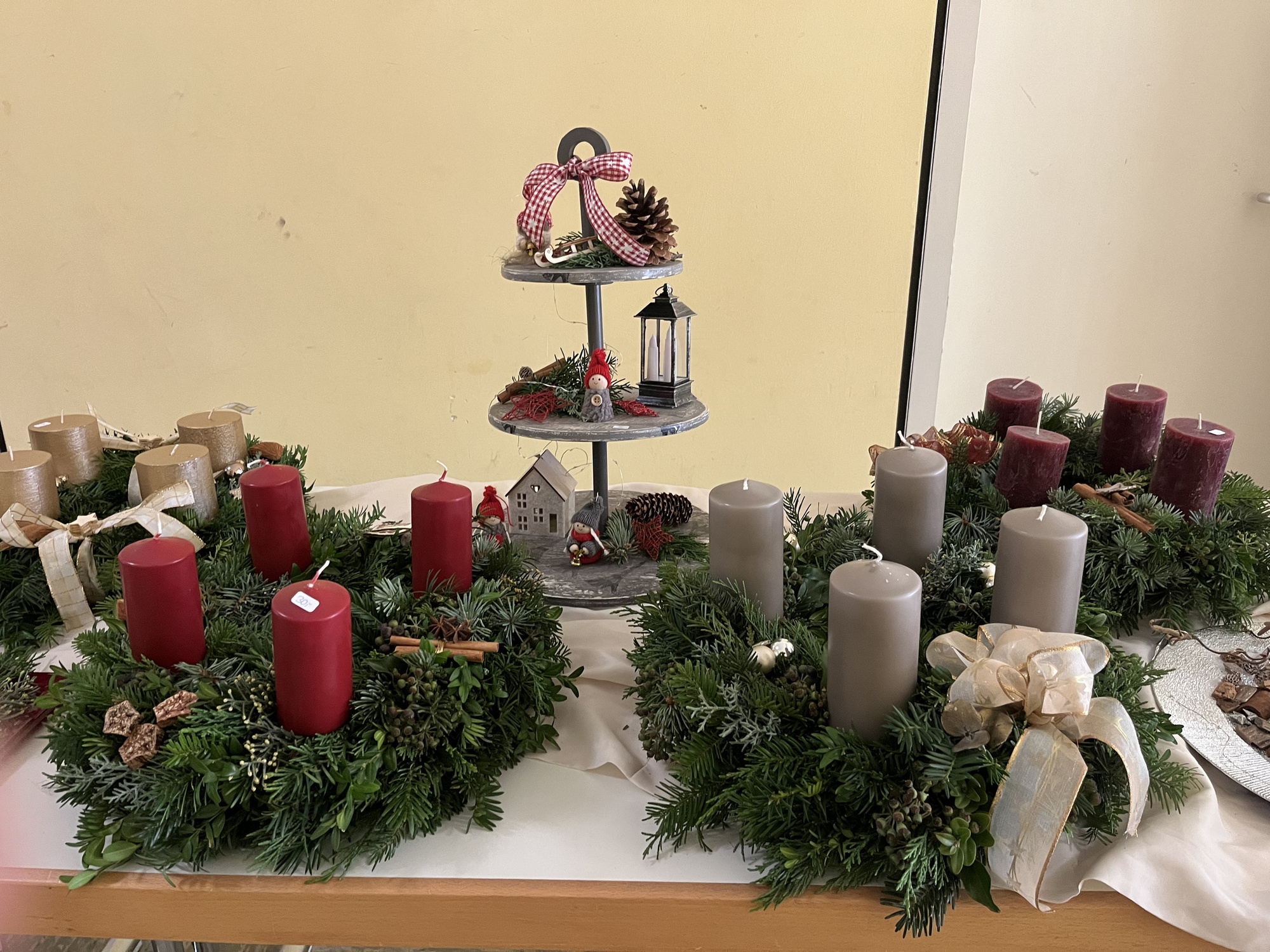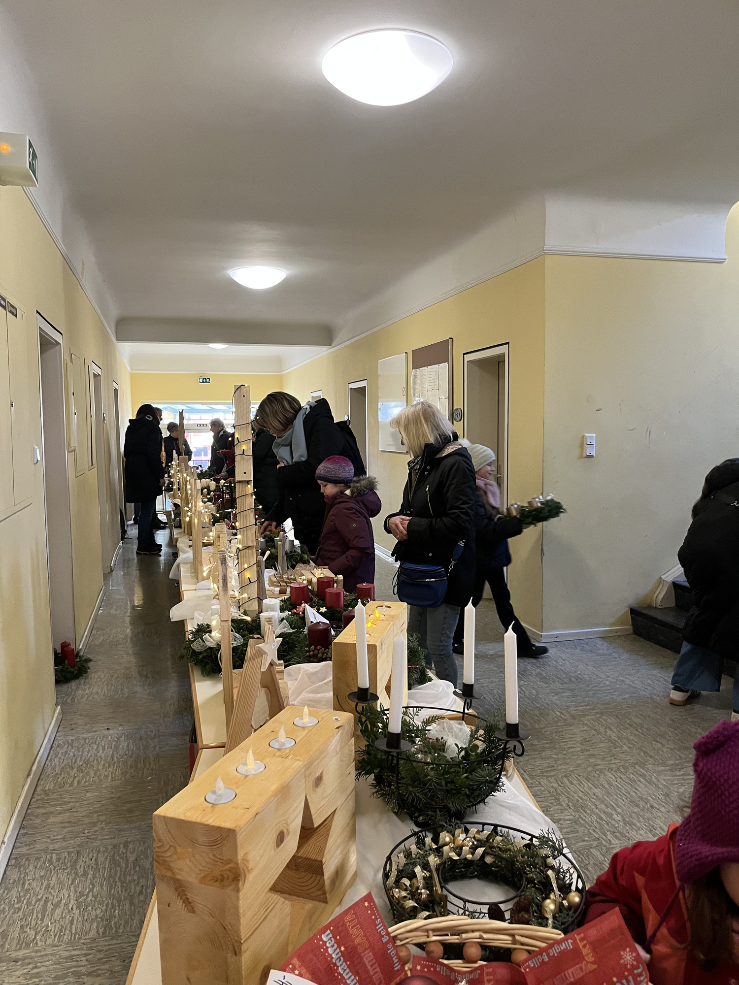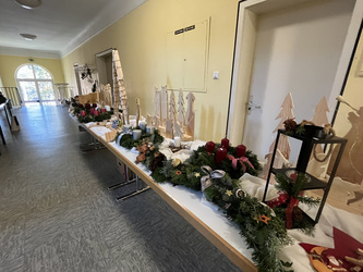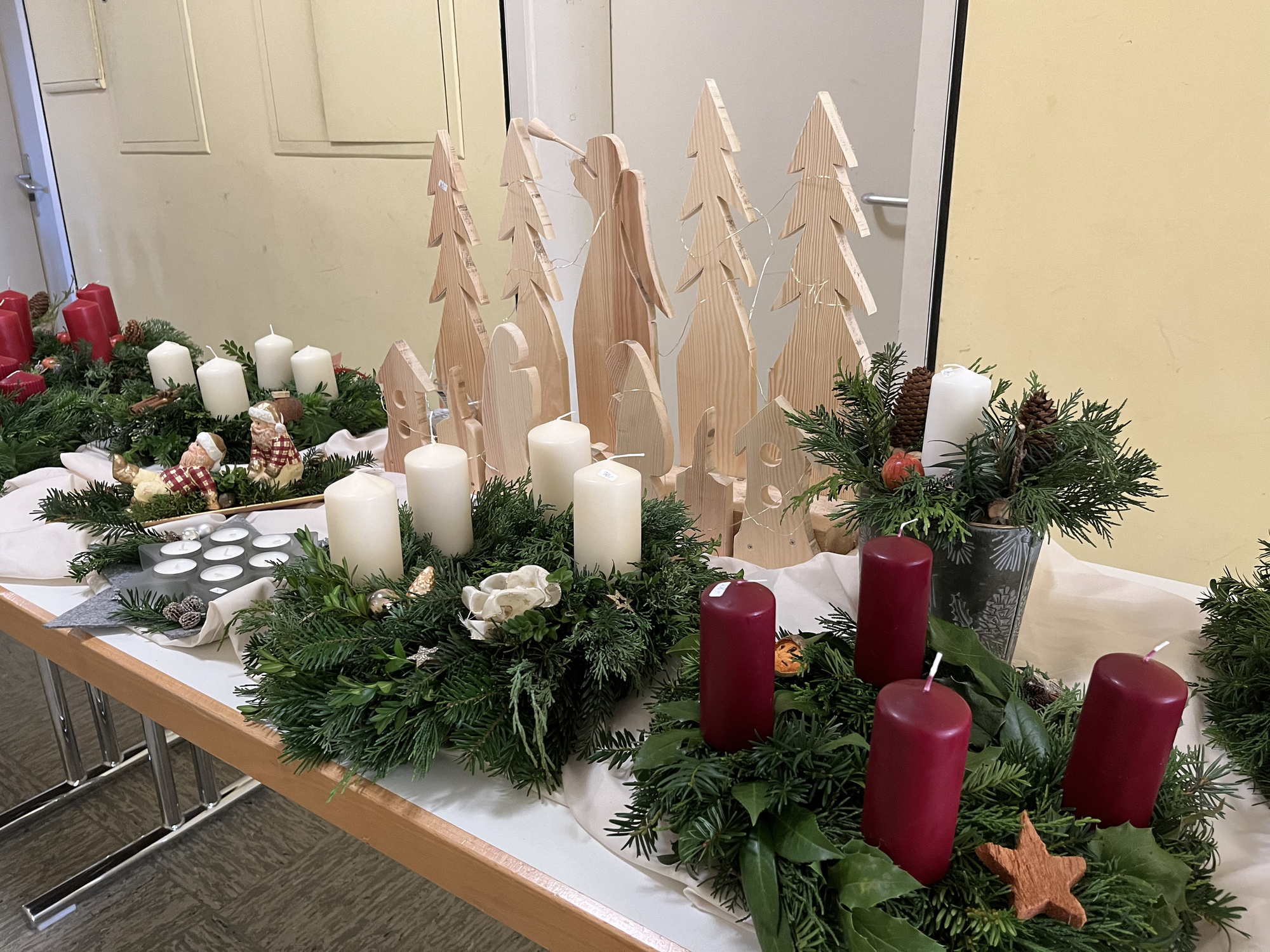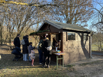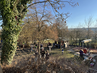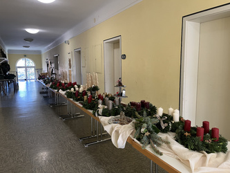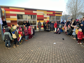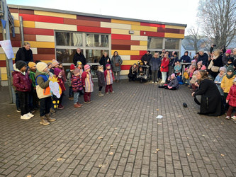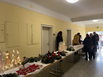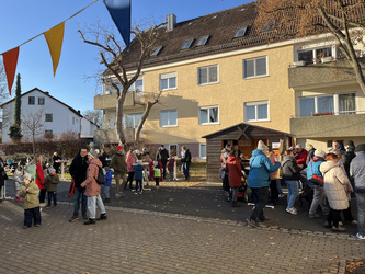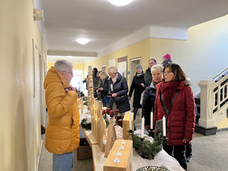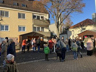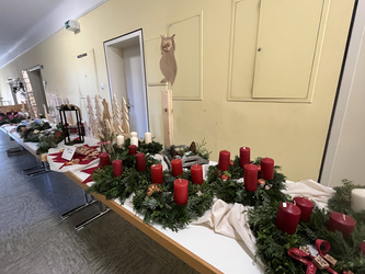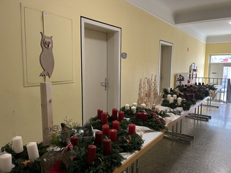 Eine langjährige Tradition hat am Nachmittag des 22.11. am Marienheim, viele Besucher angelockt. In dieser Woche trafen sich viele fleißige und kreative Bastler und geschickte Hände beim Kränze binden. Ein schönes Potpourri kam zusammen und der Duft von Tannengrün, roten Kerzen und Lichterketten gab einen Vorgeschmack auf den bevorstehenden Advent. Der Adventsmarkt wird schon seit vielen Jahren gemeinsam vorbereitet und erfreut sich großer Beliebtheit. Gleichzeitig hatten die Vorschulkinder des Kindergartens kleine Bastelkunstwerke gestaltet und angeboten. Im Innenhof des Marienheims, im Garten und im Marienheim herrschte reges Treiben. Kleine weihnachliche Buden mit Waffeln, Glühwein und Würstchen luden die Besucher zum Verweilen ein. Bei Kaffee und Kuchen konnten sich alle an diesem kalten Samstag etwas aufwärmen. Um 15 Uhr tanzten und sangen die Vorschulkinder das Singspiel der "Weihnachtsbäckerei". Der Leiter der Einrichtung, Sven Krönlein, bedankte sich im Anschluss bei Diakon Werner Trenkamp, für die 14-jährige geistliche Begleitung im Kindergarten. Werner Trenkamp wird nun in den Ruhestand gehen. Die Kinder sangen ihm als Dankeschön noch ein eigenes Ständchen: "Ich schenk dir einen Regenbogen ..."