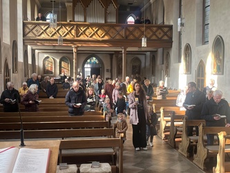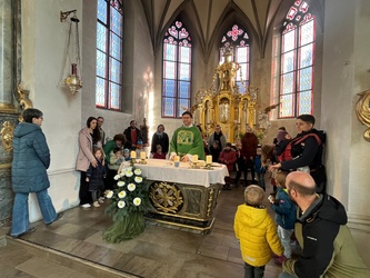 Der Herbst ist wirklich eine besondere Zeit. Er bringt uns viele Schätze ... Kastanien, Zapfen, Äpfel, Hagebutten, Eicheln, Nüsse, kleine Äste, Moos ... und so viel mehr. Eine besonders farbenfrohe Zeit mit schönen Geschenken der Natur. Jedes Kind durfte sein Tuch mit herbstlichen Früchten schmücken. Gemeinsam beteten wir in den Fürbitten: Alles hat seine Zeit, eine Zeit zum Staunen, zum Teilen, zum Lieben, zum Trauern ... Gott schenkt uns diese Zeit und jede Zeit hat ihren Sinn. Dafür danken wir. Am Ende zogen die Kinder mit ihren Schätzen in die Pfarrkirche zum Segen.