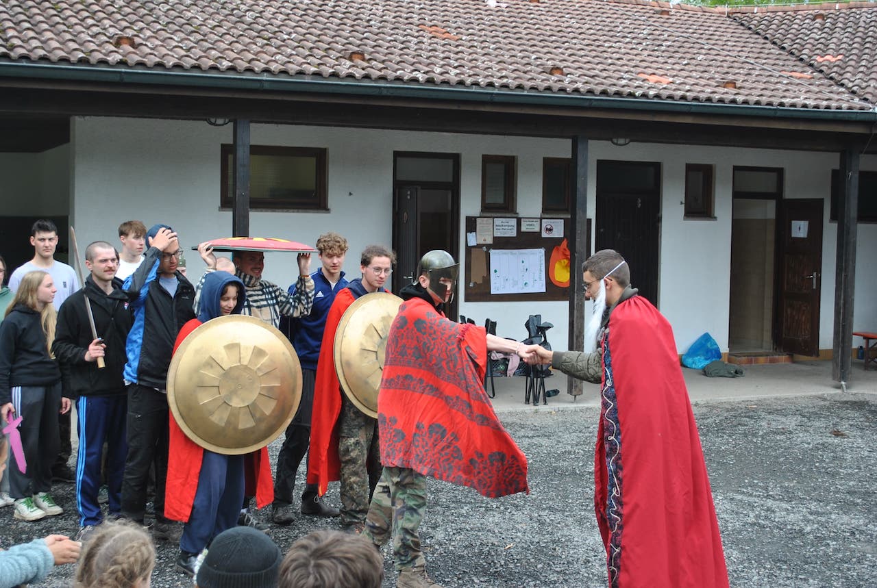 Wir verbrachten die ersten Tage damit, das kleine Dorf und seine Bewohnerinnen und Bewohner kennenzulernen und feierten einen schönen Gottesdienst mit Pater Fritz, der uns auf dem Zeltplatz besuchte. Wir schlossen unter anderem Freundschaft mit Troubadix, Verleihnix und Automatix und jagten sogar Wildschweine mit Asterix und Obelix.