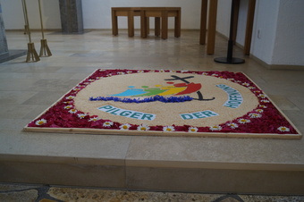 Seit jeher ist es Brauch, dass in Rothof der Blumenteppich, der sonst zu Fronleichnam gelegt wird, bereits am Christi Himmelfahrt bestaunt werden darf.