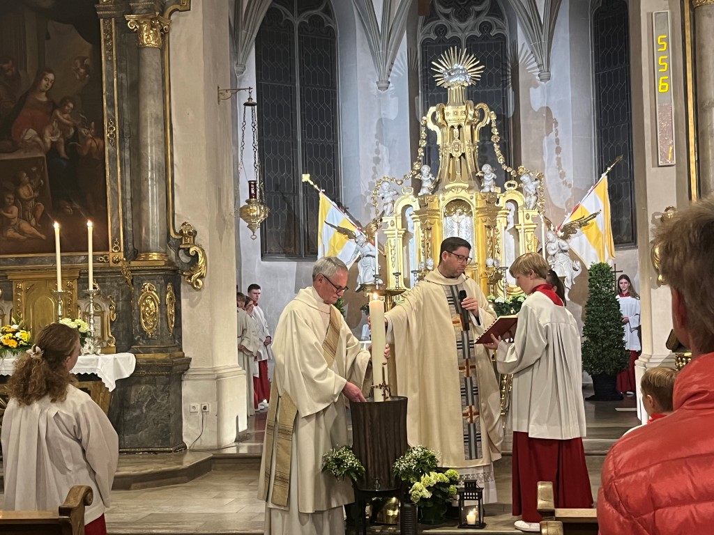 Den Höhepunkt bildete die sehr feierliche Osternacht am Karsamstag um 21 Uhr. „Jesus ist auferstanden – Jesus ist wahrhaft auferstanden“. Im Anschluss war die Gemeinde zur österlichen Freude zu Brot und Wein rund ums Osterfeuer eingeladen!