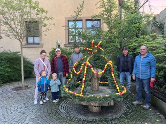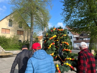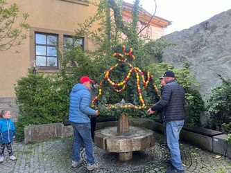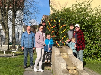 Seit vielen Jahren werden am Karsamstag die Osterbrunnen von der KAB geschmückt. Viele Eier wurden auch in diesem Jahr von fleißigen Helfern neu aufgefädelt und erstrahlen in bunten Farben.