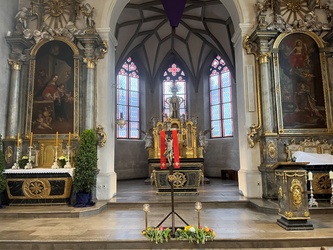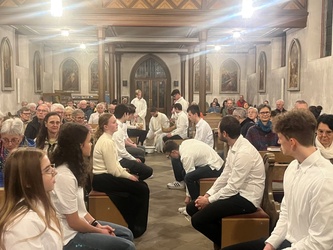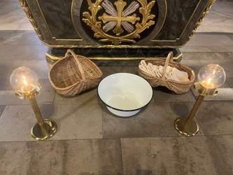 Am Gründonnerstagabend war die Gemeinde eingeladen, das letzte Abendmahl mitzufeiern. Zwölf, der älteren Ministranten zogen zusätzlich mit in den Gottesdienst ein. Seit vielen Jahren ist es Brauch, dass den Zwölfen die Füße gewaschen werden.