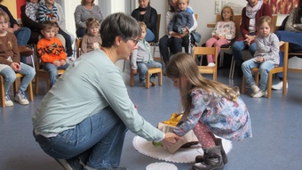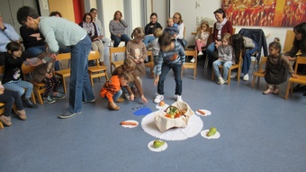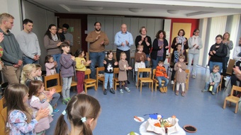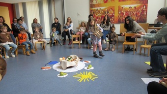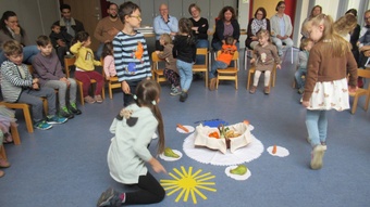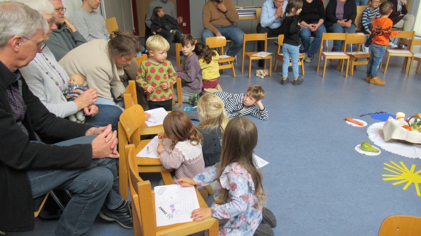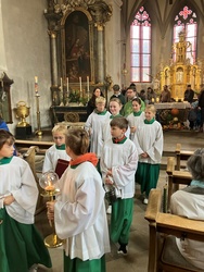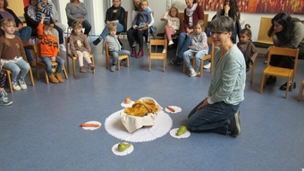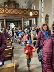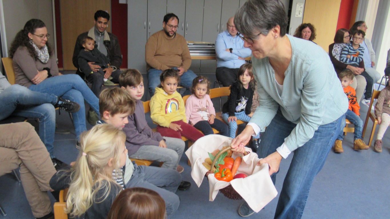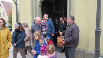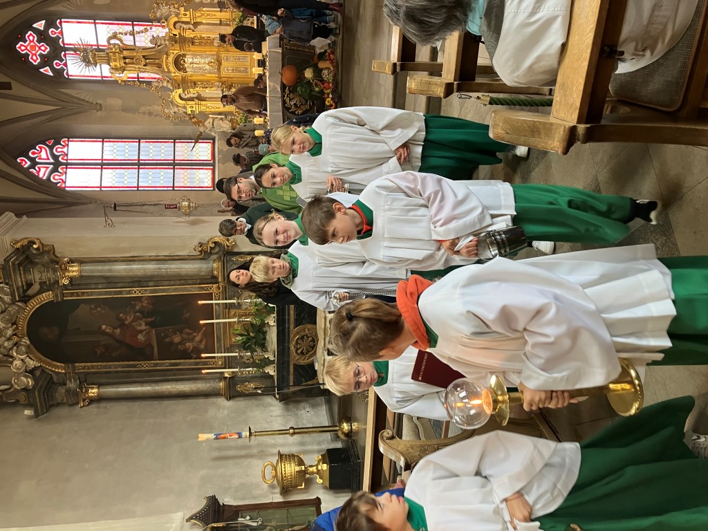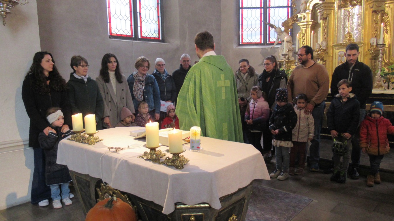 Zu Erntedank lud die Pfarrei und das Kinderkirchenteam zum Gottesdienst ein. In Zusammenarbeit mit dem OGV, der neben den wunderschön gestalteten Erntegaben vor dem Altar einen Erntewagen bereitstellte, zogen die Kinder in die Kirche mit ihren Erntegaben ein und legten sie in den Erntewagen. Die Kinderkirche feierte ihren eigenen Erntedankgottesdienst im vollgefüllten Pfarrzentrum. Gemeinsam bereiteten die Kinder in der Mitte Früchte und Gemüse. Damit die Pflanzen Früchte tragen braucht es Sonne, Regen und gute Erde. Es braucht auch die Arbeit des Menschen. Gott möchte, dass auf unserer Erde alles gut wachsen und gedeihen kann. Er sorgt für uns und schenkt uns seinen Segen.Wir beteten und malten einen Erntekorb, bevor wir in der Pfarrkirche den Segen erhielten.