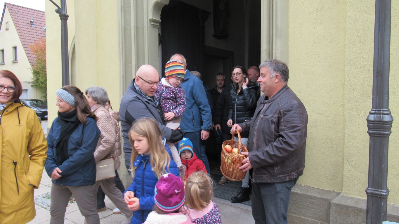 Am Ende des Gottesdienstes spendete der OGV, schon traditonell, rote saftige Äpfel für die Kinder. Herzlichen Dank dafür!
