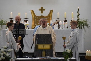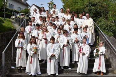Es war eine schöne Feier. Für die musikalische Umrahmung wurde die Band Sound & So engagiert. Das Schlusslied „Großer Gott wir loben dich“ wurde von dem Onkel eines Kommunionkindes auf der Orgel angestimmt. Die Musiker haben den Gottesdienst mit viel Schwung begleitet und die Familien in guter Stimmung entlassen.