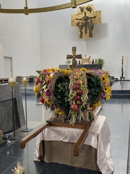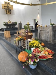 Am wichtigsten war den Kirchbesuchern sicherlich der Dank an den Schöpfer für eine gute Ernte, dafür, dass wir genug zu essen haben und nicht hungern müssen, wie etwa zur Zeit die Menschen im Gaza-Streifen oder in Teilen Südost-Asiens. Der Zelebrant Werner Trenkamp machte in seinen Gebeten und in seiner Predigt ausdrücklich auf die Verpflichtung zur Hilfe aufmerksam.