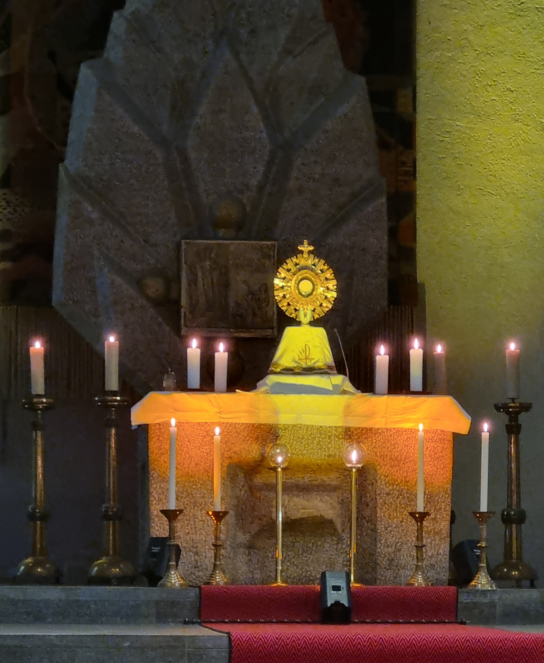 Kompakter und vielfältiger gestaltete sich die diesjährige Gebetszeit am Tag der Ewigen Anbetung in ULF. Der Liturgieausschuss nahm sich des traditonellen Gebetstages an und überlegte, wie man einer schwindenden Beteiligung entgegenwirken kann. Erstmals wurde dann zu einem Abend der Anbetung als neues Format eingeladen. Erfreulich groß war die Beteiligung und Resonanz der Gemeinde. Nach der abendlichen Messfeier, in der Pfarrer Johannsen das "Lied vom Du" von Martin Buber in den Mittelpunkt stellte, gab es eine erste klassische Gebetseinheit, auf die eine Phase der stillen Anbetung folgte. Mitglieder des Sachausschuss Liturige gestalteten dann mit Pastoralreferentin Lisa Hippe ein Gebet mit Elementen aus Taize. Die letzte Stunde war geprägt von Orgelimpulsen, die Kirchenmusiker Martin Wetterich ausgesucht hatte, ergänzt durch geistliche Gedanken zur Eucharistie und der Einladung zur Stille. Als es bereits die Nacht hereinbrach schloss die Anbetung mit dem eucharistischen Segen und dem TE DEUM. Max Meder sorgte durch seine Lichtinstallation für die passenden Atmosphäre im Kirchenraum. Erstaunlich viele Gottesdienstbesucher blieben den ganzen Abend und feierten und beteten in den verschiedenen Einheiten mit.