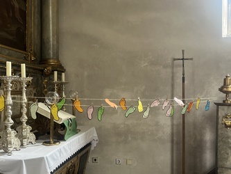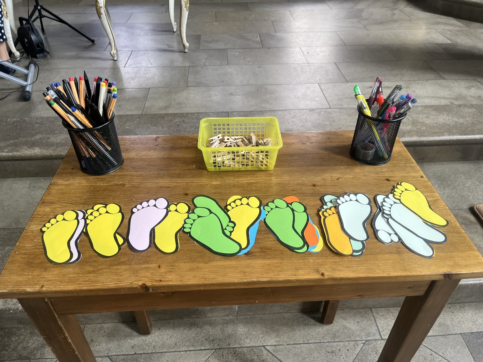Jeder Besucher durfte Wünsche für die nächsten 1000 Jahre auf kleine Fußspuren schreiben, die einen Platz in der Kirche fanden.