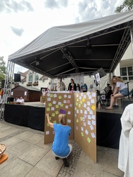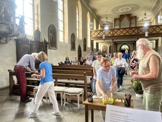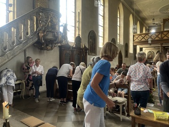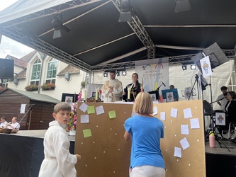 Bereits am Samstag und am Sonntagnachmittag luden „1000 Sekunden für Gott“ in die Kirche ein, die einen zentralen Platz mitten im Dorffest einnahm.