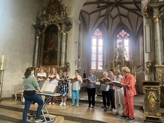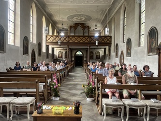 Am Samstagnachmittag, war es ein „Tag mit Goldrand“ – ein Moment mit Goldrand, den wohl jeder von uns schon erlebt hat, vielleicht auch beim Dorffest, über den es nachzudenken galt. Vorbereitet und gestaltet von Pfr. Henrike Acksteiner und dem Chor Schalom.