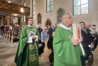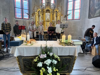 Am Ende bedankte sich Pfarrvikar Thomas bei allen, die den Gottesdienst mitgestaltet haben von der MMM-Band, bis zum Küsterehepaar…- ein gelungener Einstand.