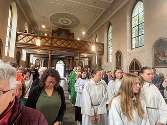 Dann zog unser neuer Pfarrvikar und Diakon Werner Trenkamp mit einer sehr großen Ministrantenschar in den Gottesdienst ein.