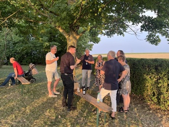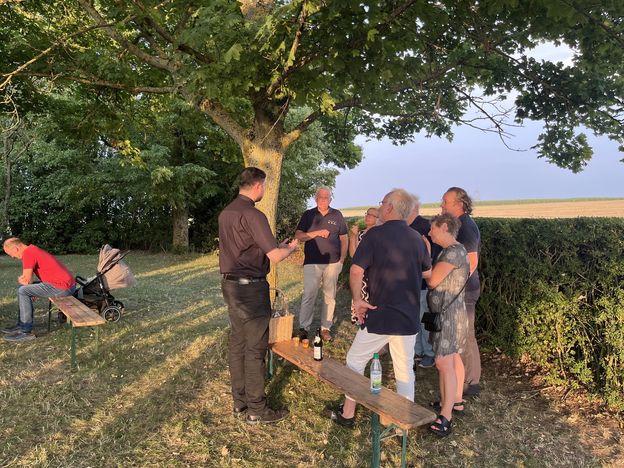 Im Anschluss war noch Gelegenheit zum gemütlichen Beisammensein bei Getränken und einem kleinen Imbiss. Es wurde in dieser abendlichen Stimmung gerne angenommen, denn spontan gab es auch einen Fahrdienst zum Käppele. Der Dank gilt Karl Scheckenbach.