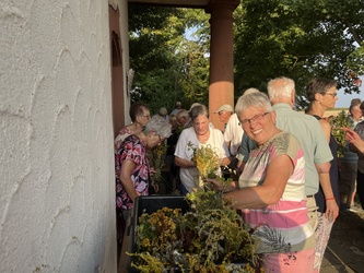 Am Ende des Gottesdienstes wurden die kleinen Kräutersträuße gesegnet. Herzlichen Dank gilt den fleißigen Frauen, die kleine Sträuße mit wohlriechenden Kräutern gebunden hatten und gegen eine kleine Spende am Ende des Gottesdienstes anboten.