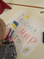 Als Michael und Alexander aus Deutschland, Irina und Victoria aus der Ukraine und Svjetlana aus Russland zusammen ein fröhliches Lied musizierten, ließen die Harmonien Frieden hautnah spüren. Als Sophie mit deutsch-russischen Wurzeln ein spanisches Lied über den Mond sang und später Deutsche: „Der Mond ist aufgegangen“, rührte die Poesie dieser beiden Lieder die Menschen genauso an, wie die Spiritualität der Lieder von Aravind aus Indien. Durch Mut, Lebensfreude und ihre Musikalität brachten Kinder die Menschen zum Lächeln: Dimar aus der Ukraine spielte Kajon, Valentin aus Deutschland und Ragav aus Indien Klavier. Angeleitet von Victoria Overcuc aus der Ukraine und Ruth Braun ließen sich sehr viele Gäste zwischen 2 und über siebzig Jahren, darunter Bürgermeister Schmitt und Pater Martin König von der fröhlichen Musik mitreißen. Sie tanzten gemeinsam mit den anderen ausgelassen und ausdauernd zwischen den Tischen und auf der Bühne. Nach dem Fest klangen in vielen Musik und Gespräche noch nach – und verband sie weiter.