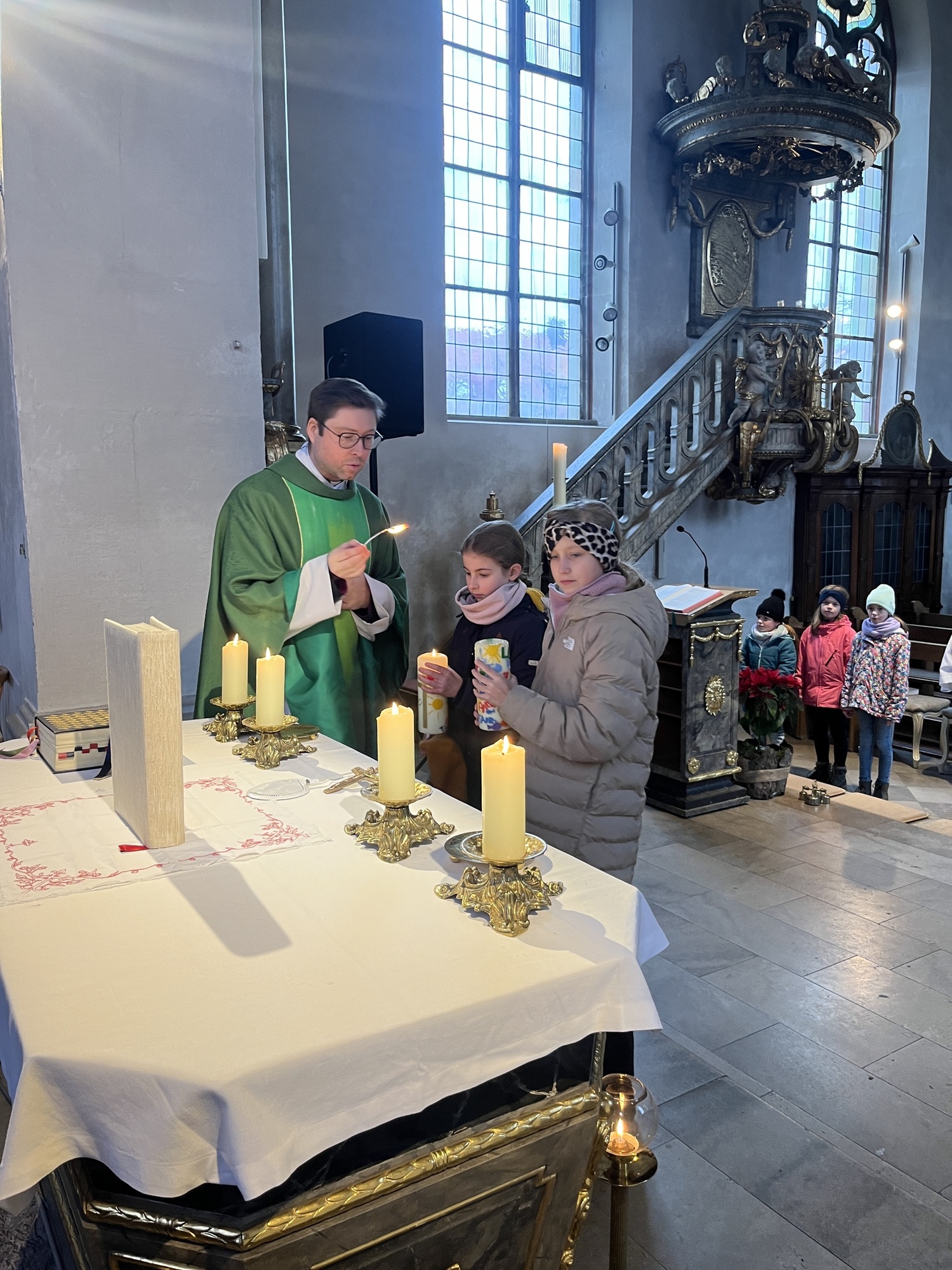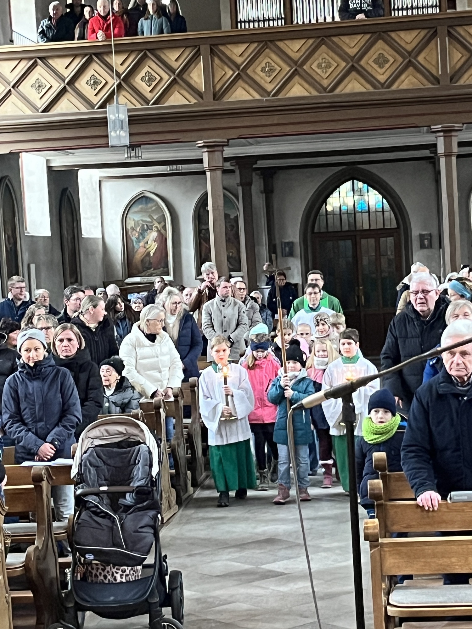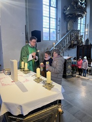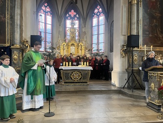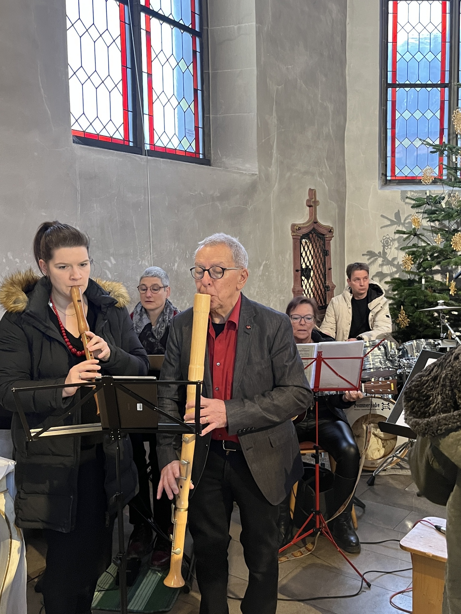 Geschichten aus dem Alten Testament, wie die Befreiung des Volkes Israel sind in den Gospels ebenfalls beispielhaft. Mit "Go down Moses", eröffnete der Chor den Gottesdienst. Begleitet wurde der Chor von Bernd Hesselbach am Schlagzeug, Gertrud Türk an der Gitarre, Ilona Müßig am Keyborad. Franz Schmitt und Katharina Scheller begleiteten mit der Flöte. Herzlichen Dank gilt der Chorleiterin Roswitha Schmitt für ihr Engagement.