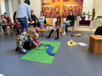Bartimäus spürt: Jesus ist gut, das Leben ist gut. Ich freue mich, dass ich leben darf. Jesus nimmt Bartimäus an die Hand und er geht mit ihm. Wir beteten gemeinsam, bevor wir in der Kirche den Segen erhielten.