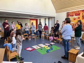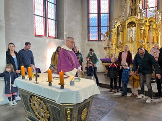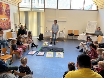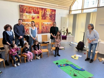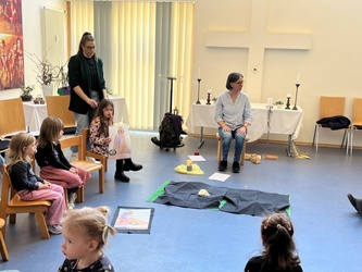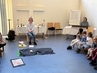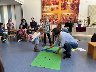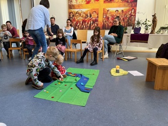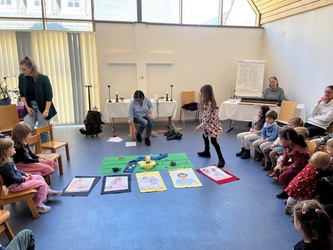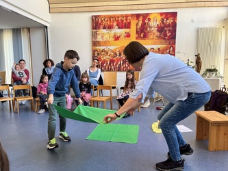 Bartimäus spürt: Jesus ist gut, das Leben ist gut. Ich freue mich, dass ich leben darf. Jesus nimmt Bartimäus an die Hand und er geht mit ihm. Wir beteten gemeinsam, bevor wir in der Kirche den Segen erhielten.