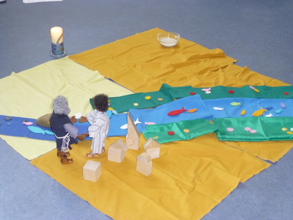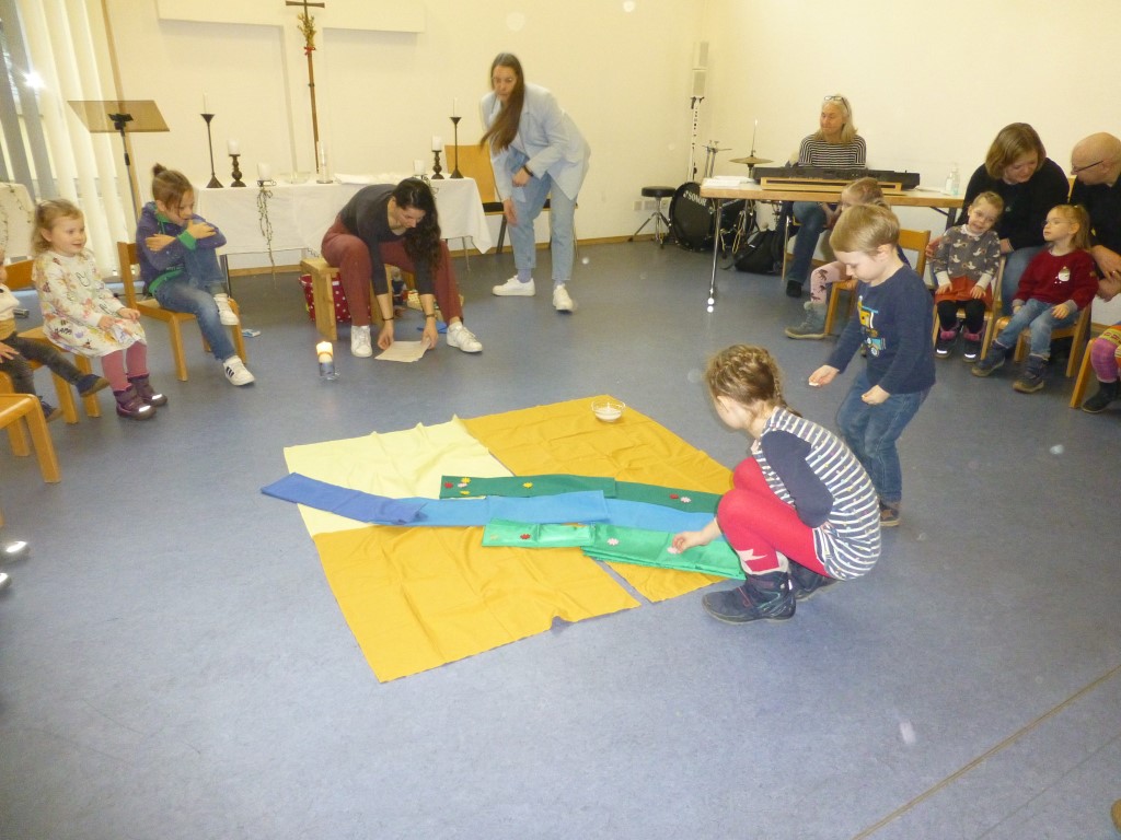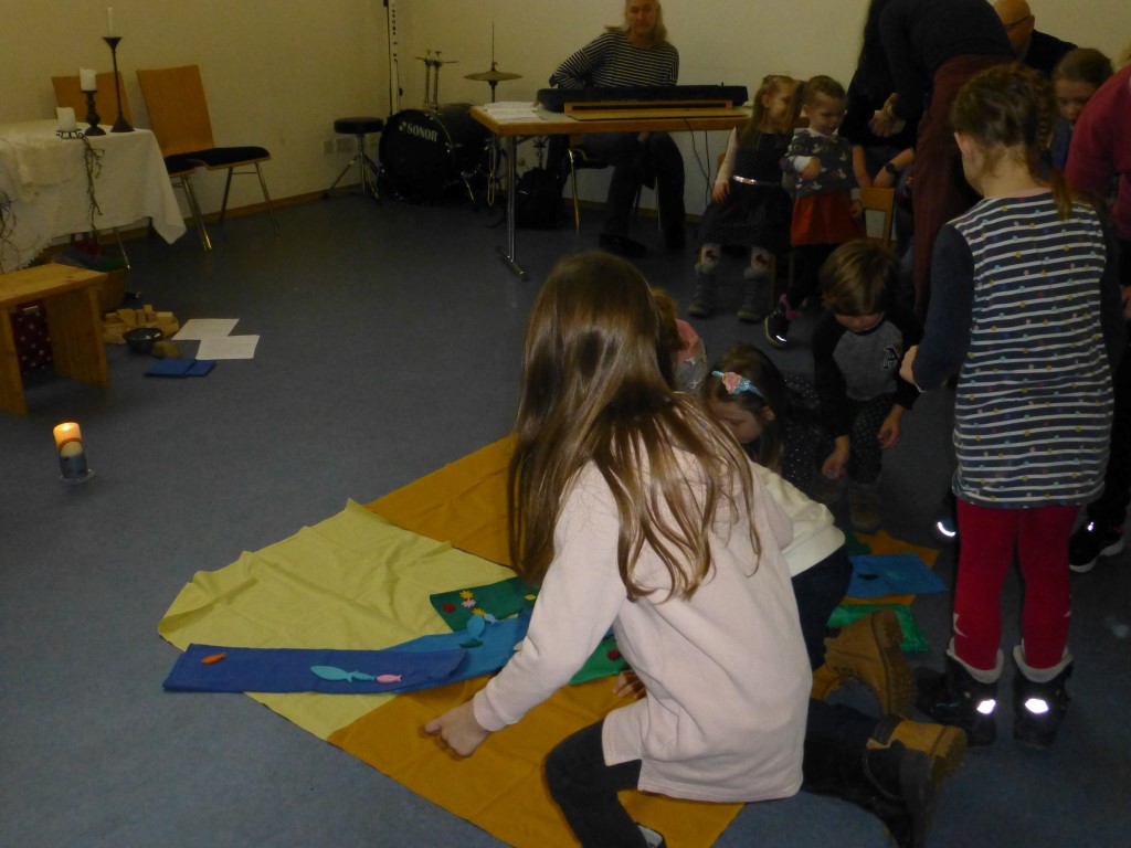 Am Sonntag, 4.2. lud das Kinderkirchenteam zum monatlichen Gottesdienst ein. Im gefüllten Pfarrzentrum, legten alle gemeinsam eine Landschaft, weit weg von uns. Unsere Geschichte führte uns ins Land Israel zum Fluss Jordan. Dort blühte und grünte es ... das Wasser ließ vieles wachsen. Dort taufte Johannes die Menschen und auch Jesus. Gestärkt mit Gottes Kraft ging Jesus zu den Menschen in ihre Dörfer und Städte ... er ging zu allen die Gott suchen. Wir hörten von unserer eigenen Taufe, durch die wir zu Jesus gehören. Wir entzündeten Lichter, für alle, die ein Licht brauchen. Mit unserer Kerze gingen wir in die Pfarrkirche und erhielten dort den Segen.