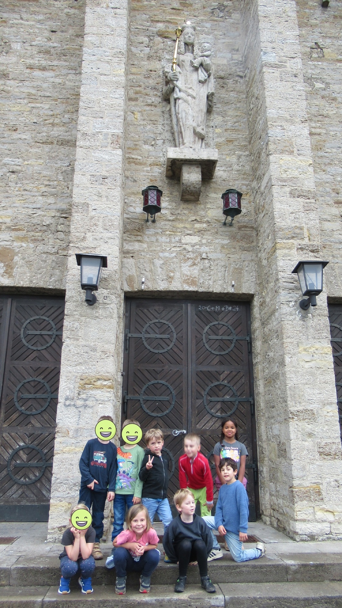 Am Mittwoch liefen wir sehr bewusst einmal um die Kirche herum und zählten die Schritte. Die Kinder brauchten 245 Schritte.