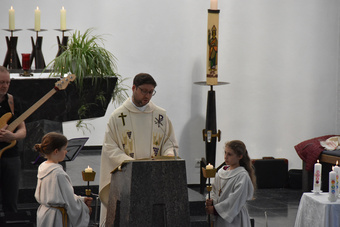Begleitet wurde der festliche Gottesdienst musikalisch von der Band „Sound und so“ und Heilichsblechle. Passend zum Thema hatte die Band sogar das Mottolied einstudiert, das sie während der Kommunion spielte.