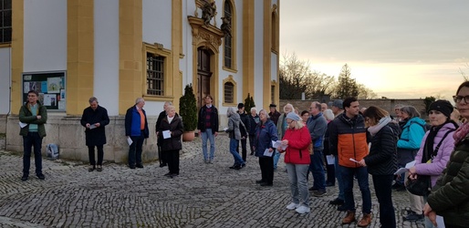 Da das Käpelle keinen eigenen Wallfahrtsseelsorger mehr hat und es bereits um 18 Uhr geschlossen war, gestalteten wir den Abschluss vor dem Käpelle. Ein herzlicher Dank gilt Georg Rödel, der den Kreuzweg vorbereitet hat, den Gottesdienstbeauftragten aus den Pfarreien fürs Vorbeten und der musikalischen Begleitung der Laurentius Musikanten aus Heidingsfeld. Ein herzliches Vergelts Gott!