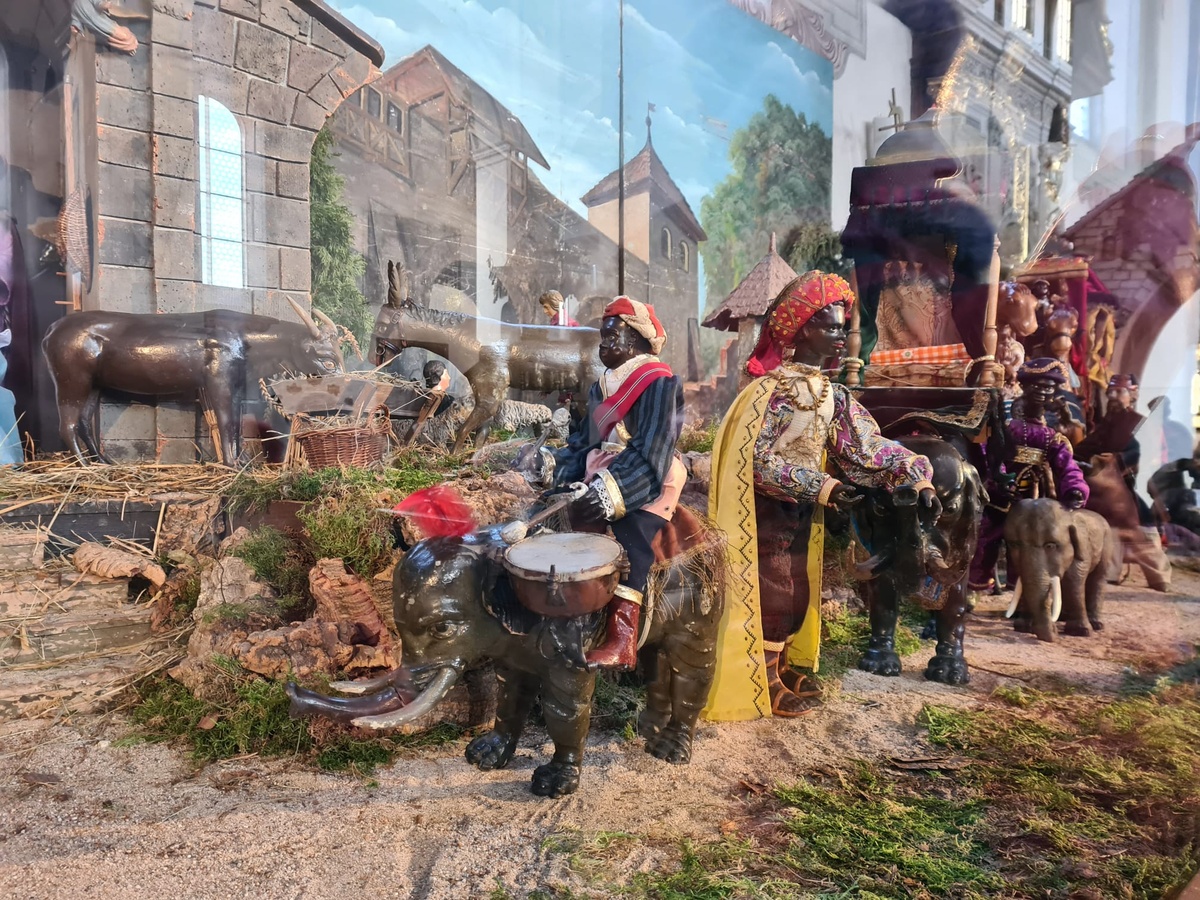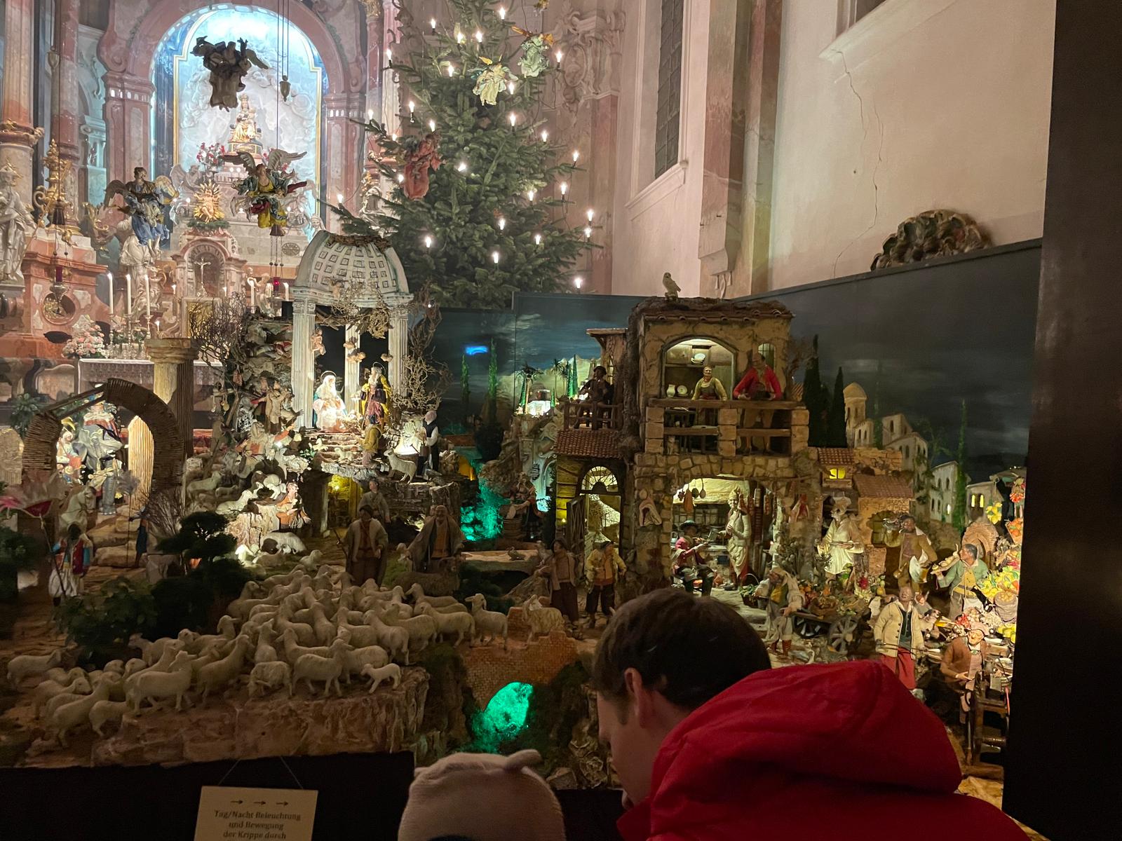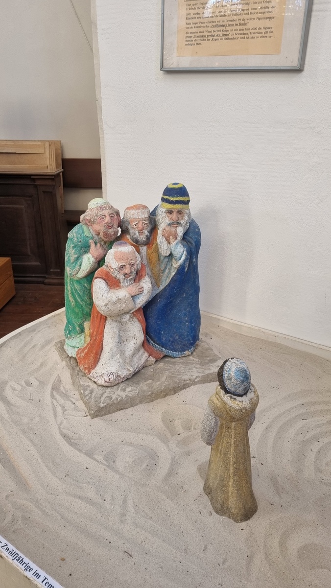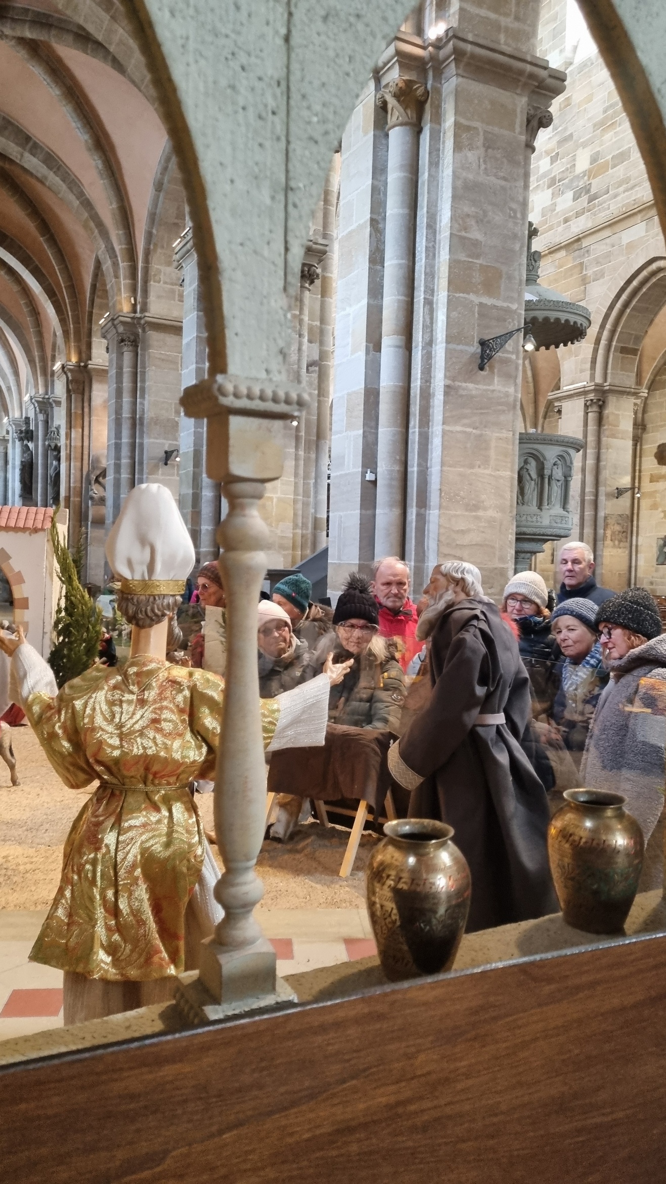 Echte Kölner kennen mehr als die sieben Sakramente, die sich im Katechismus finden. Zu den sieben bekannten Sakramenten kommen dort noch „Blasisussegen“, „Die Tante im Kloster“ und schließlich „Krippen anschauen“. Ganz so viel Bedeutung misst der Franken den weihnachtlichen Darstellungen in Holz, Stein oder Gips nicht zu, aber „Krippen anschauen“ ist auch für uns eine wichtige Aufgabe in der Weihnachtszeit, die wir ja bekanntlich bis zum 2. Februar ausdehnen. Seit über 40 Jahren lädt die romantische Stadt Bamberg zum Krippenweg durch mehr als 30 Kirchen ein: moderne oder traditionell, fränkisch oder biblisch inszeniert. Vor dem Hochfest der Heiligen Drei Könige machten auch wir uns in diesem Jahr auf, um eine Etappe auf dem Bamberger Krippenweg zu gehen. Aufgeteilt in zwei Gruppen, je nach körperlicher „Leistungsbereitschaft“, ging über St. Elisabeth zum Domberg und zur Oberen Pfarre bis zur evangelischen Kirche St. Stephan. Die zweite Gruppe wählte den Weg durch die Stadt über St. Martin bis nach St. Elisabeth. Dort führt die weihnachtliche Szenerie mitten ins Leben der Gartenstadt. Zwischen Ständen mit Tomaten, Blumenkohl und traditionellen Gemüse aus dem Bamberger Umland wird das Kind geboren. Wie alle, die zur Krippe kommen, tragen auch die Eltern die Tracht der Menschen des 18. / 19. Jahrhundert. Ganz anders zeigt sich die Steinkrippe in St. Stephan, die den Bogen von der Verkündigung bis zur Suche der Eltern nach dem zwölfjährigen Jesus im Tempel führt. Die Künstlerin Wini Bechtel-Kluge stellte Menschen neben die Personen des Neuen Testaments weitere Gestalten der Kirchengeschichte. In der wachsenden Krippe des Domes finden sich beeindruckende Details aus dem Leben in Bamberg in Verbindung mit dem biblischen Bericht, so die Frau, die dem Bettler ein typisches Weihnachtsgebäck aus Franken reicht. Bis zur Hochzeit von Kana und dem Gleichnis von den törichten und klugen Jungfrauen lässt sich die Krippe in der Oberen Pfarre, die als einzige alte Weihnachtsdarstellung die Verbote der Aufklärung überstand, erweitern. Mit vielen kleinen Szenen und liebevollen Details erzählt sie vom Leben der Stadt und macht Bamberg zum Bethlehem, in dem Jesus geboren wurde.