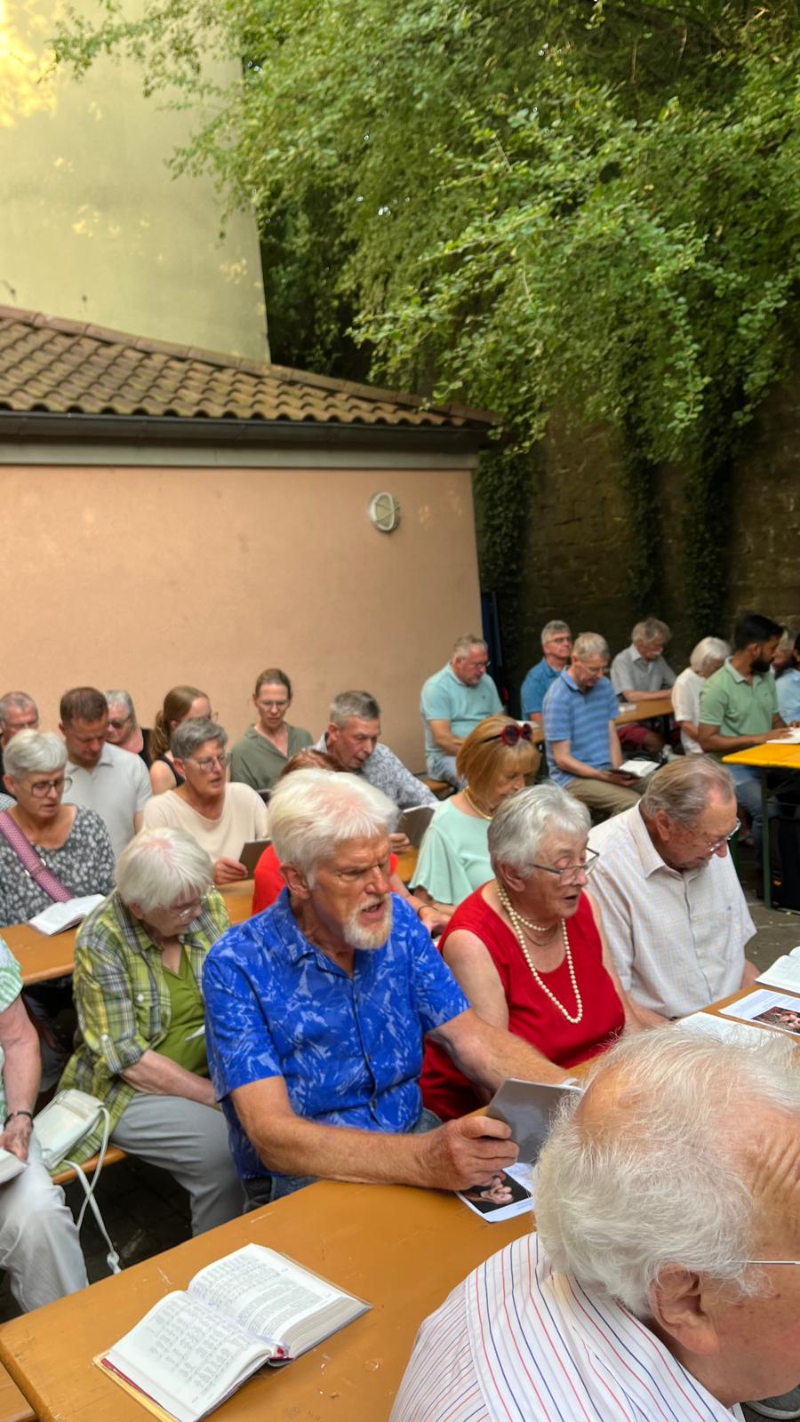Nach dem Gottesdienst ging es über zum gemütlichen Teil. Das Festteam bewirtetet die Gäste mit Speisen und Getränken, so dass es bis zum Sonnenuntergang noch ein schöner Sommerabend wurde.