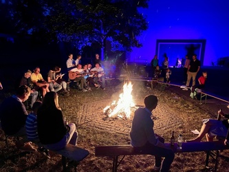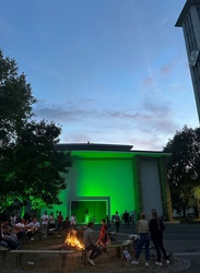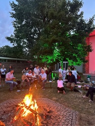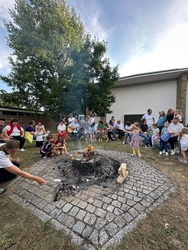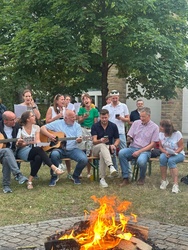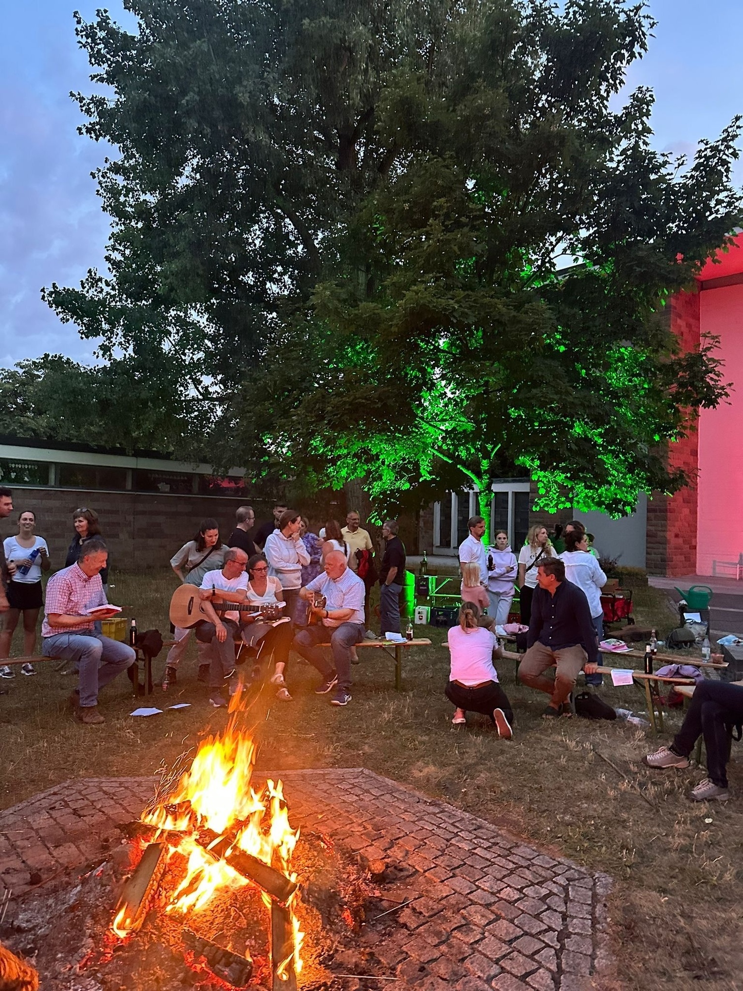 Viel mehr Besucher als erwartet kamen zum ersten Abend am Lagerfeuer auf dem Kirchplatz von St. Alfons. Begegnungen von Jung und Alt, Getränke und das gemeinsame Singen am Feuer machten den Abend zu einem schönen Erlebnis in der Mitte der Keesburg. Wir freuen uns schon auf den nächsten Abend!