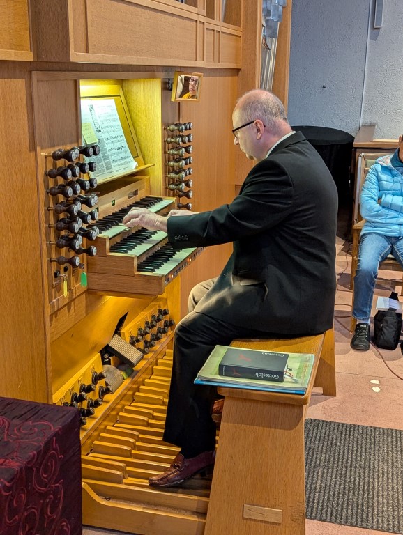 Der Organist von Unsere Liebe Frau, Martin Wetterich, spielte eine gute halbe Stunde auf der Schuke-Orgel in der Pfarrkirche.
