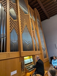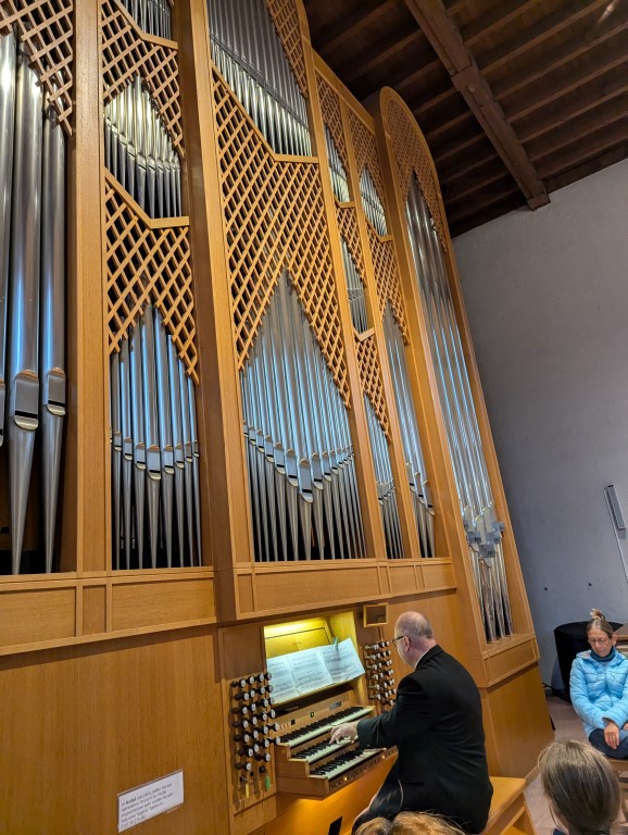 Unter anderem erklang eine Improvisation zu „Wer nur den lieben Gott lässt walten“ und die Dorische Toccata von Bach. Nach einer kurzen Erläuterung des berühmten Westminster-Schlages aus dem Elizabeth Tower am Westminster Palace in London spielte Herr Wetterich noch das „Carillon de Westminster“ von Louis Vierne.