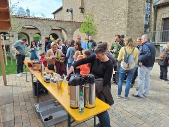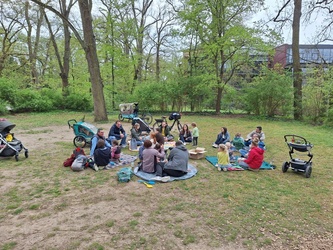 Nach dem Palmsonntagsgottesdienst stärkten sich die Familien zunächst beim gut besuchten Kirchenkaffee. Anschließend ging es gemeinsam in den Ringpark. Dort hatte der Osterhase schon bunte Eier und Überraschungseier versteckt. Jedes Kind musste ein Ei in einer bestimmten Farbe suchen. Danach wurden die Eier gleich beim gemeinsamen Picknick verzehrt.
