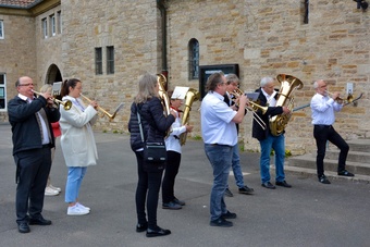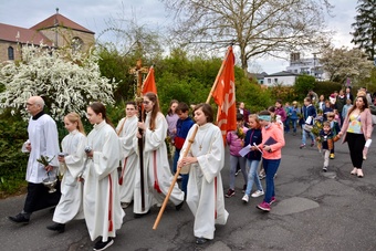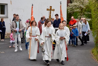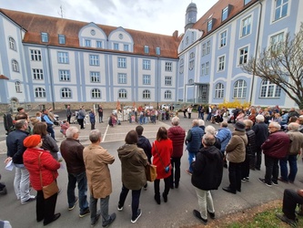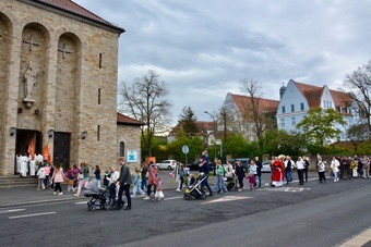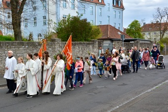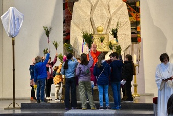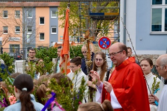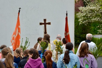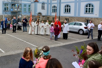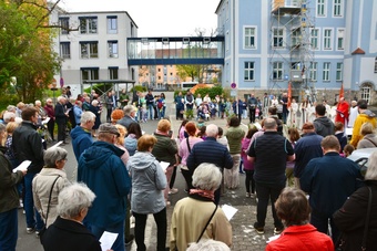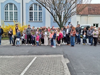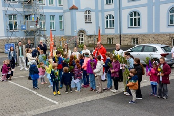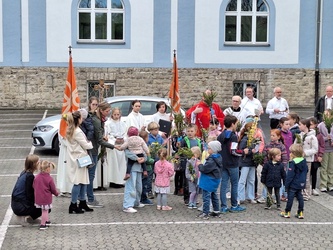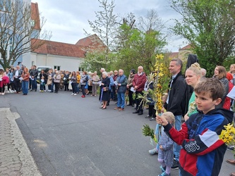 In gewohnter Tradition traf sich die Gemeinde auf dem Gelände des Landratsamtes zur Palmweihe. Gemeinsam zogen alle zum Gottesdienst in die Kirche.