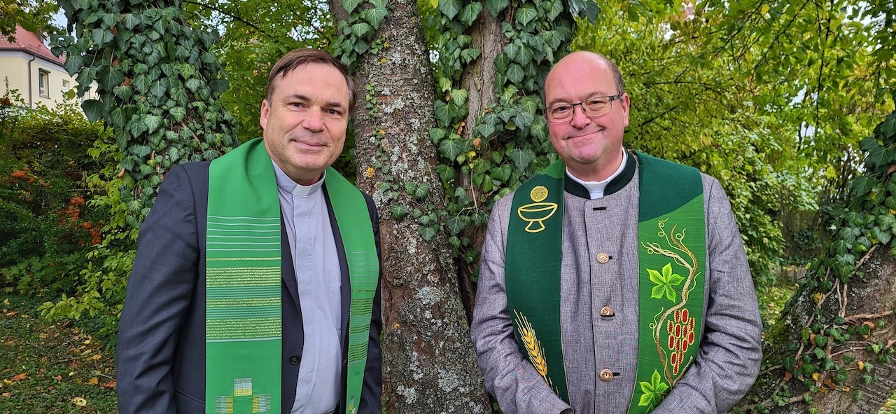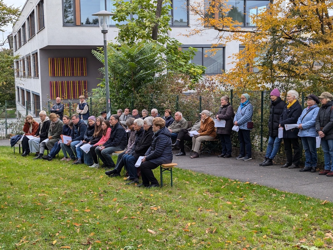 Trotz des inzwischen herbstlichen Wetters haben wir uns wieder am Baum der Ökumene in der Grünanlage am Ende der Mozartstraße getroffen, und dort mit unseren Pfarrern Sven Johannsen von ULF und Niko Natzschka von der Martin-Luther-Kirche gemeinsam Gottesdienst zu feiern. Das Sonntagsevangelium mit dem berühmten Kamel-Vergleich hat uns angeregt, über arme und reiche Christen nachzudenken und gemeinsam zu beten für eine gerechtere Welt. Pfarrer Johannsen betonte in seiner kurzweiligen und einprägsamen Predigt, daß es kein Verbrechen an sich sei, Geld zu besitzen, sondern vielmehr wichtiger, mit seinem Geld richtig umzugehen und es für einen guten Zweck einzusetzen. Das haben sich die etwa 40 anwesenden Gemeindemitglieder zu Herzen genommen und für ein Projekt der Deutschen Lepra- und Tuberkulosehilfe (DAHW) in Pakistan insgesamt 700 Euro Spenden gesammelt. Für die wieder äußerst gelungene musikalische Umrahmung sorgte unser Bläserensemble „Heilichs Blechle“, das mit einem breiten Repertoire von Bach über Elgar bis hin zum romantischen Volkslied „Der Mond ist aufgegangen“ begeisterte. Zum gemütlichen Ausklang trafen wir uns im Anschluss im Martin-Luther-Saal bei Wein und Gebäck. Vielleicht klang dort bei dem ein oder anderen die bekannte Liedstrophe noch etwas nach: „Es werden satt aufstehen, die arm und hungrig sind, die Reichen müssen gehen, ihr Gut verweht im Wind.“