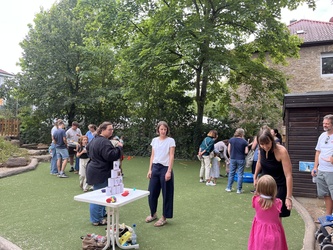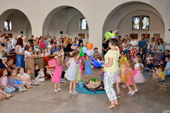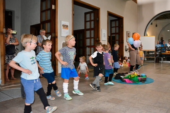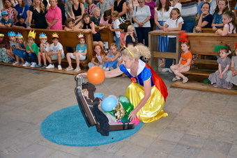 Neben der Aufführung des Kindergartens zum Thema „Eine Reise ins Märchenland“ und einem Kuchenverkauf, gab es eine große Hüpfburg sowie eine Spielstraße und einen Bücherflohmarkt.