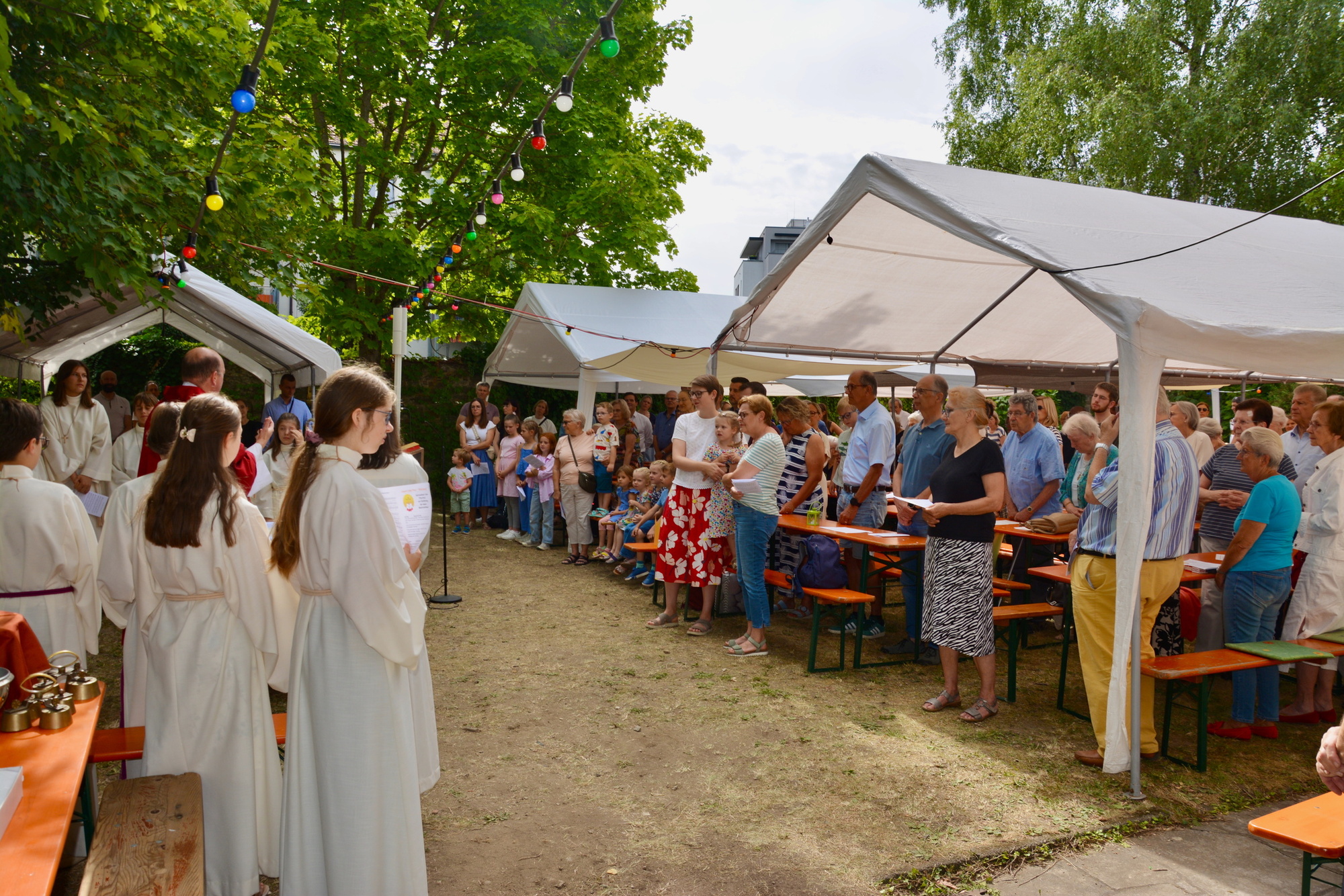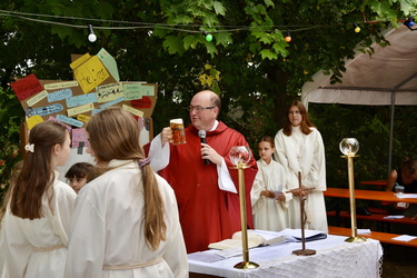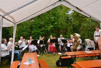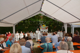 Die Messfeier am Sonntag begann in diesem Jahr bereits um 10 Uhr und fand - musikalisch untermalt von „Heilichs Blechle“ - erstmals auch direkt auf dem Festgelände im Pfarrgarten statt.