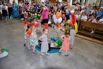 Da das Pfarrfest immer generationenübergreifend zusammen mit dem Sommerfest des Kindergartens gefeiert wird, war der Nachmittag abseits des üblichen Festbetriebs gefüllt mit verschiedenen Programmpunkten für jung und alt: