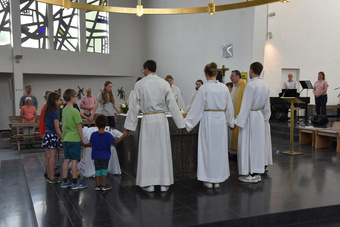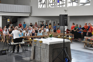 Das diesjährige Pfarrfest am 19. und 20. Juli war wieder ein voller Erfolg. Ein Highlight des Festes war das Eröffnungskonzert des Chors Concino. Zahlreiche Besucher konnten den Liedern des Chors lauschen - von Gotteslob bis Troubadour, von Rock bis Pop und von Klassik bis Musical - oder auch Teil des Konzertes werden und mitsingen. Es wurden über 600€ Spenden an die Tafel übergeben.