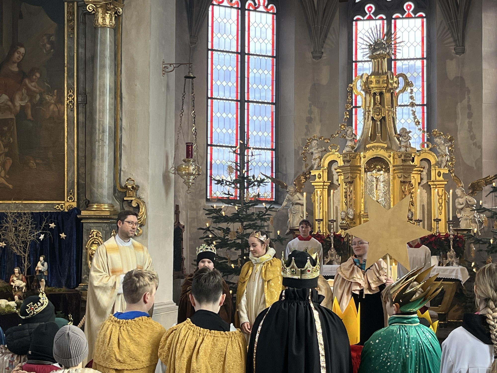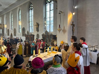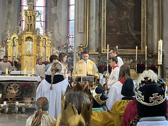 Herzlich begrüßt wurden die "königlichen Hoheiten" im festlichen Gottesdienst am Dreikönigstag. Viele Sternsinger sind heute unterwegs durch Rottendorf. Sie bringen den Segen vom Kind in der Krippe in die Häuser unserer Heimat. Viele warten darauf und haben sich bereits im Vorfeld einen Stern geholt und heute an ihre Häuser aufgehängt. Sie zeigen damit, dass sie diese Aktion unterstützen und sich über einen Besuch der hl. drei Könige freuen. So wie die Weisen damals dem Stern folgten, folgen auch wir dem Stern und greifen nach den Sternen, um das Gute in unserem Leben leuchten zu lassen.
