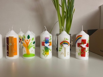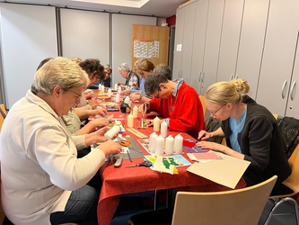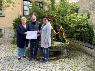 Seit vielen Jahren gestaltet die KAB in der Fastenzeit Osterkerzen. Auch in diesem Jahr kamen sehr viele Frauen und Männer zusammen, um gemeinsam Osterkerzen zu gestalten. Insgesamt konnten von Palmsonntag bis zur Osternacht 190 Kerzen an verschiedenen Gottesdiensten und im Eine-Welt-Laden verkauft werden. Der Reingewinn sollte in diesem Jahr an den Verein Kiwi e. V. (Kinder Würzburger Intensivstationen) gehen. Gemeinsam mit Burkhard Ott von der KAB Rottendorf, Andrea Zoller (Organisation der Kerzenaktion) und der 2. Vorsitzenden Monika Wohlfart des Vereins Kiwi e. V. wurde die Spende in Höhe von 830€ am Osterbrunnen vor dem Rathaus offiziell übergeben.