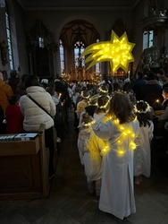 Bereits am Nachmittag des Heilig Abend feierten die Kinder in der Kindermette die Geburt des Jesukindes. 32 Kinder waren aktiv beim liebevoll vorbereiteten Krippenspiel dabei und erfreuten die vollgefüllte Kirche. Um 17.30 Uhr fand die Christmette in der Pfarrkirche statt. Den Höhepunkt bildete die Mitternachtsmette um 23 Uhr auf dem Rottendorfer Käppele.
