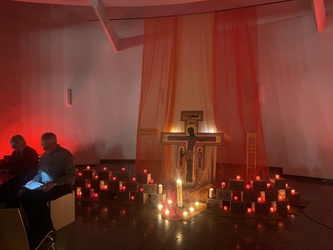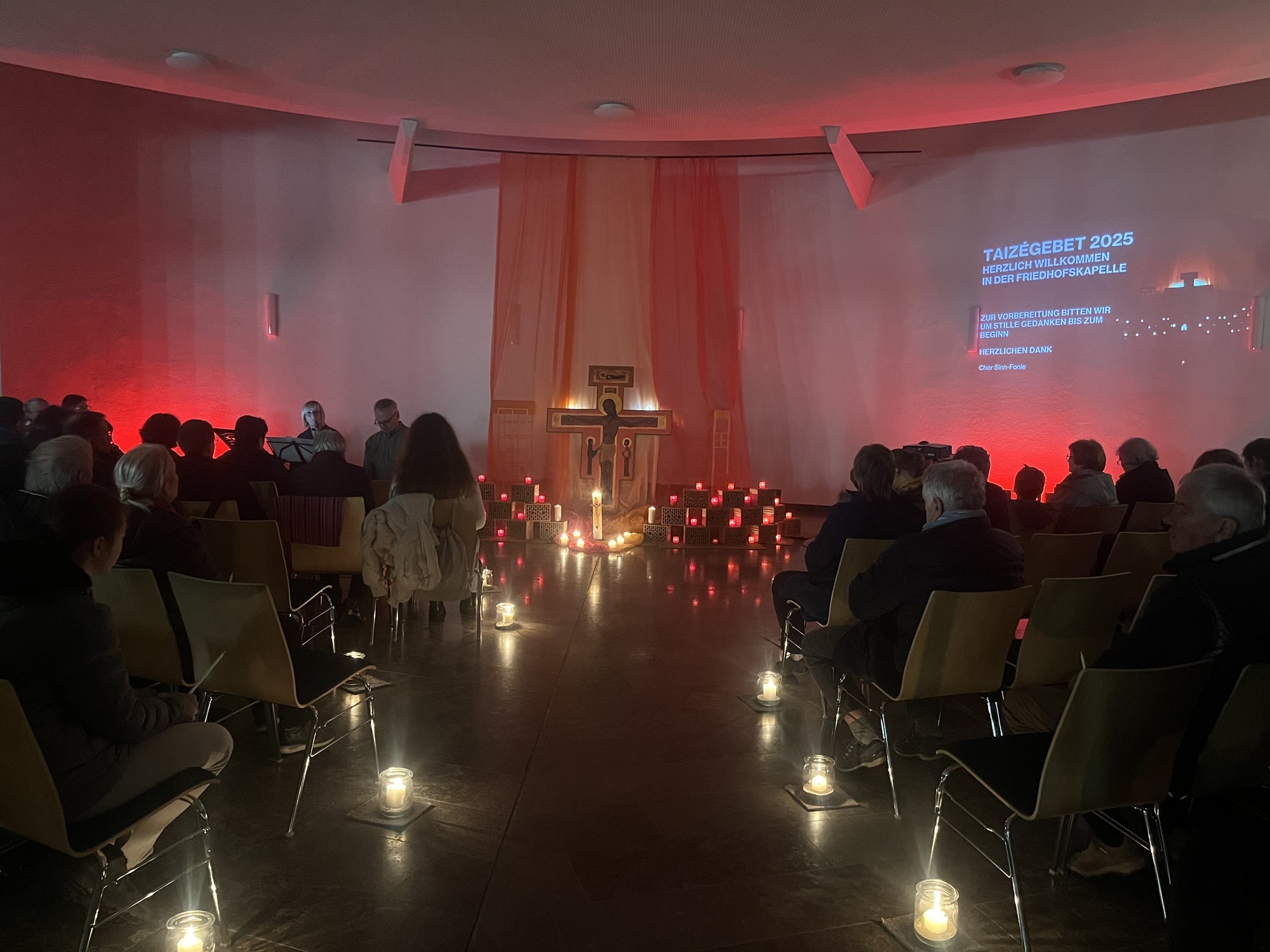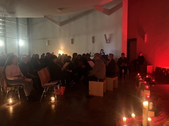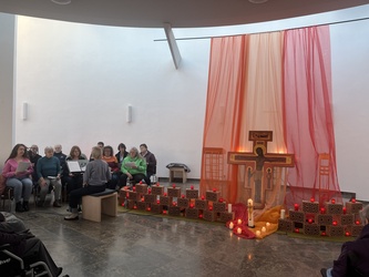 Am Montagnachmittag waren die Senioren des nahegelegenen Seniorenheims zu einer Taizéstunde eingeladen. Dies war nochmals eine ganz besondere Stunde des gemeinsamen Gebets. Danke an alle, die das Taizégebet vorbereitet, organisiert und durchgeführt haben, besonders Roswitha und Franz Schmitt und alle, die sich immer wieder vom Spirit von Taizé begeistern lassen.