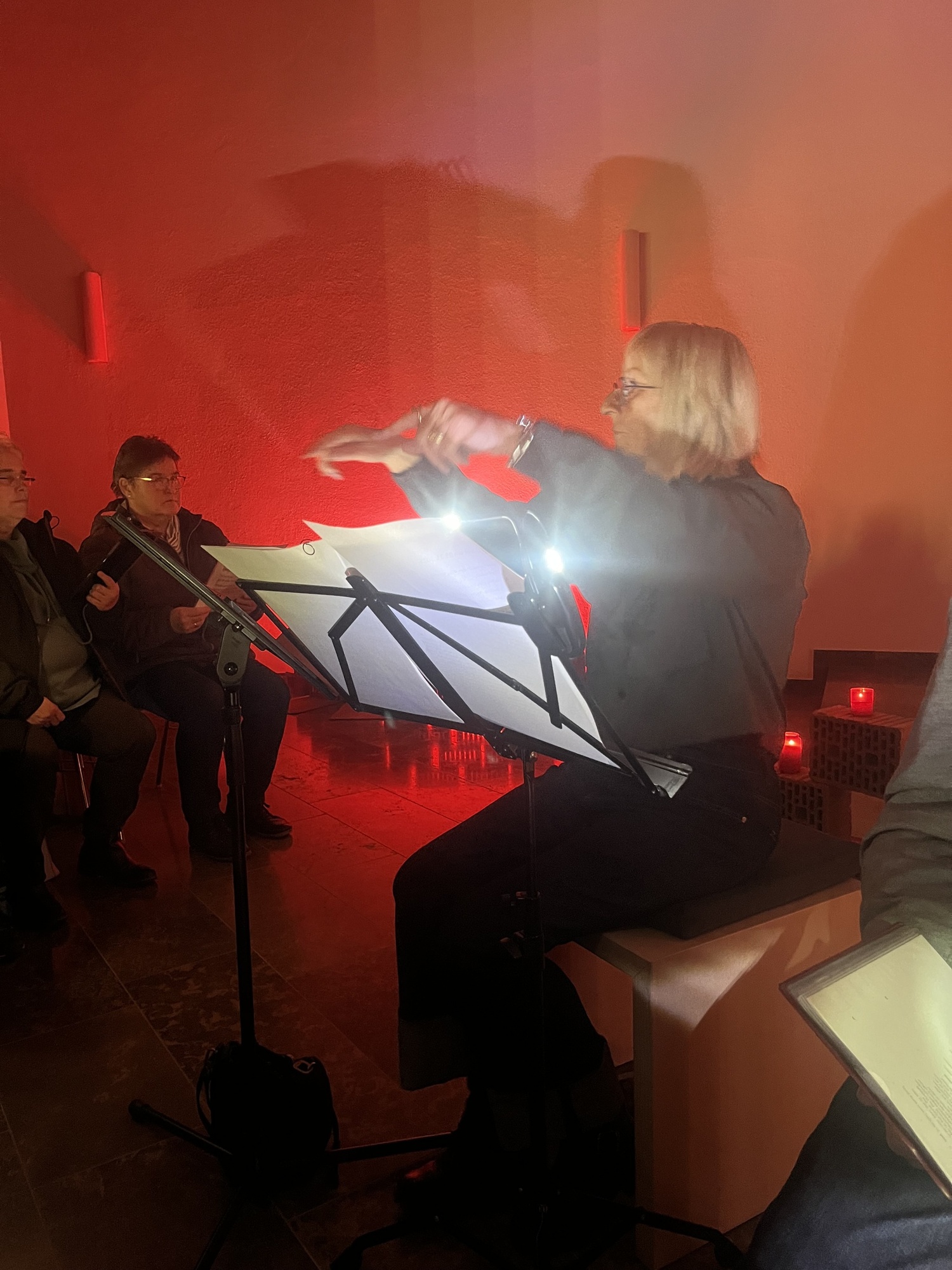 Am Sonntagabend, 9.11.25 hatte der Chor Sinn-Fonie traditionell zum abendlichen Taizégebet eingeladen. "Aber du weißt den Weg für mich" - mit diesem ersten Gesang begrüßte der Chor alle Gäste. Jesus zeigt den Weg und lässt uns die Entscheidung frei, den Weg mitzugehen. Er lädt uns ein, ihm zu vertrauen. Viele Menschen haben in der einfachen Spiritualität und den Liedern von Taizé ihren Weg als Christen im Alltag gefunden. Er geht alle mit und er kennt auch den Weg für mich.