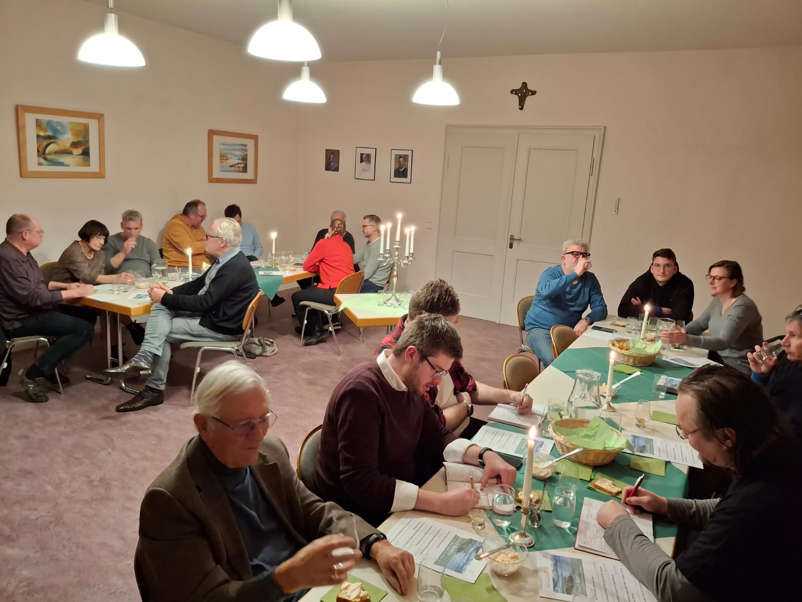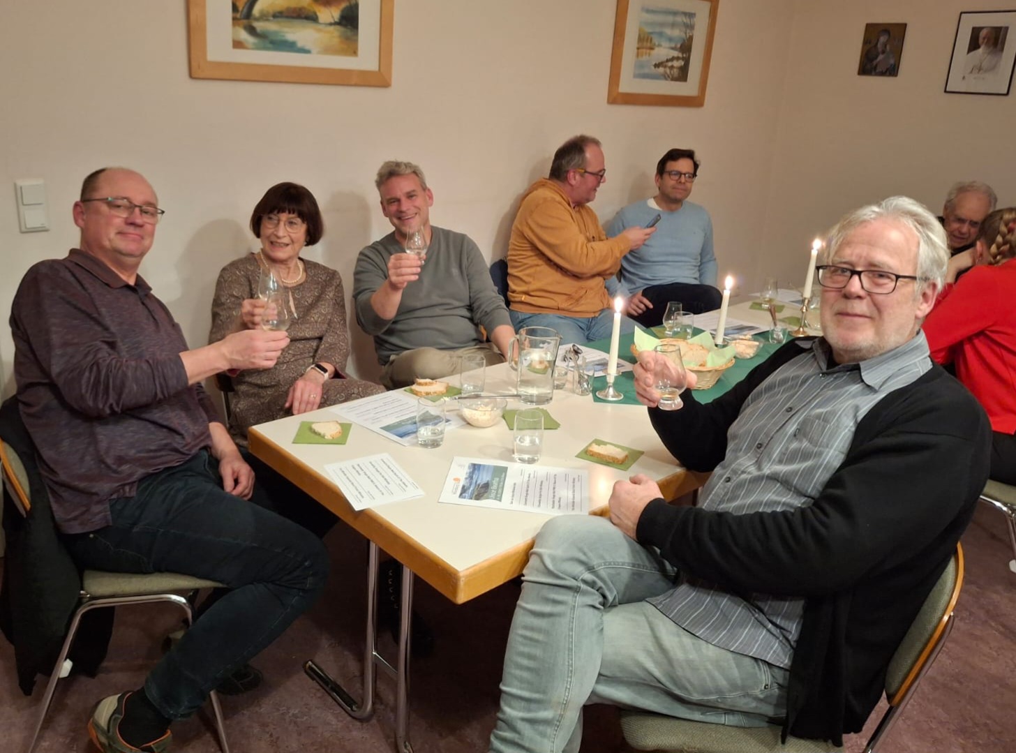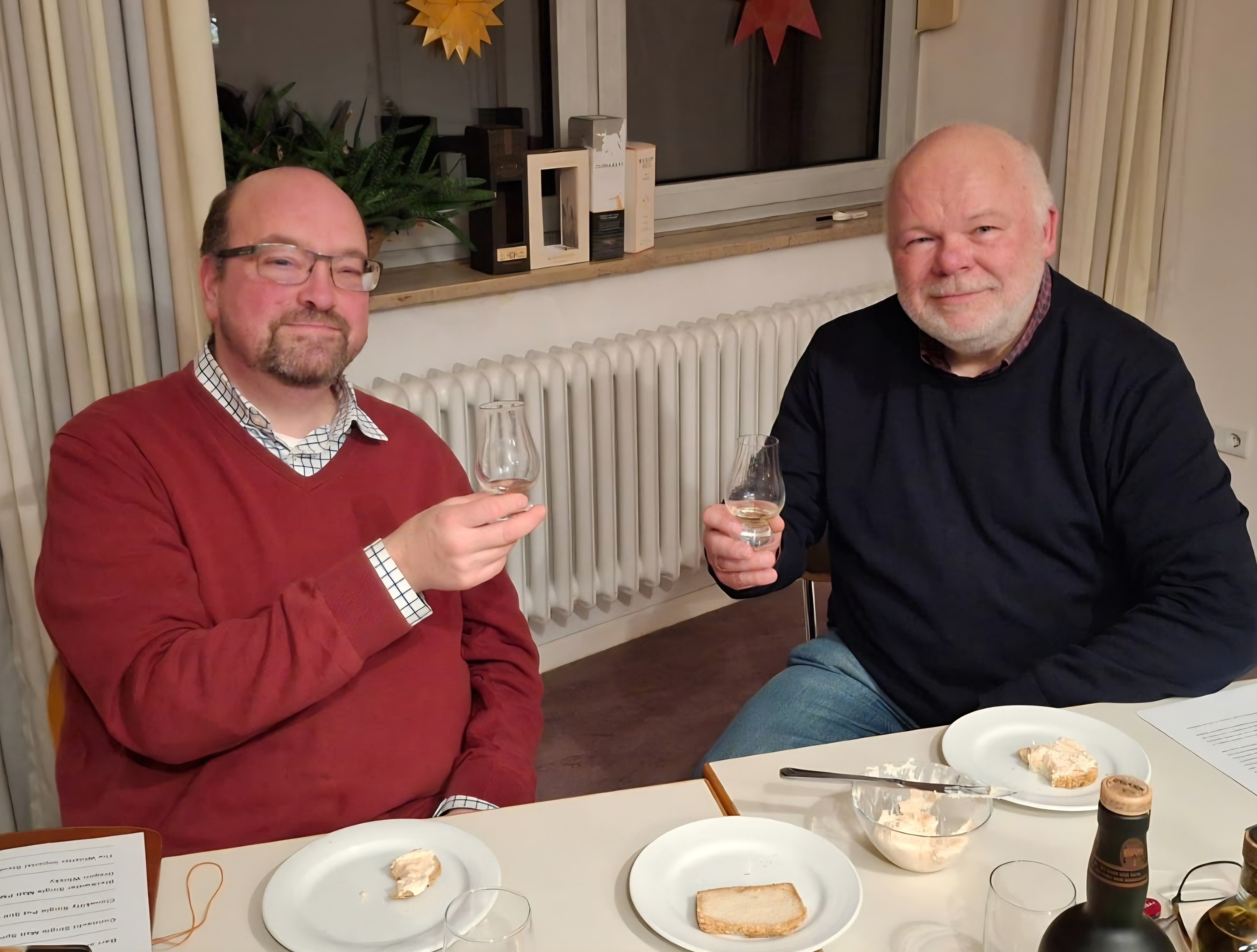 Matthias Fleckenstein und Pfarrer Sven Johannsen spannten einen weiten Bogen vom heiligen Patrick und den Anfängen des Whiskeybrennens bei den altirischen Mönchen bis zu den modernen, kleinen Destillerien, die den irischen Whiskey so einzigartig und abwechslungsreich machen und versuchen, die alte Tradition des Brennens mit einer Rückbesinnung auf regionale Zutaten und überlieferte Rezepturen in die Zukunft zu führen. Geschichten über kupferne Pot Stills und den Anteil der Engel am Inhalt des Whiskeyfasses, das in der salzigen Luft der Atlantikküste reift, wurden von Proben aus unterschiedlichen Regionen Irlands und selbstgebackenem Sodabrot begleitet. Natürlich durften auch Informationen über landschaftliche Highlights einer Irlandreise nicht fehlen, und es gab die tröstliche Versicherung, dass wir uns als Christen glücklich schätzen können, da uns der Genuss von Alkohol nicht verwehrt ist: „Können denn die Hochzeitsgäste fasten, solange der Bräutigam bei ihnen ist?“ so fragt Jesus selbst.