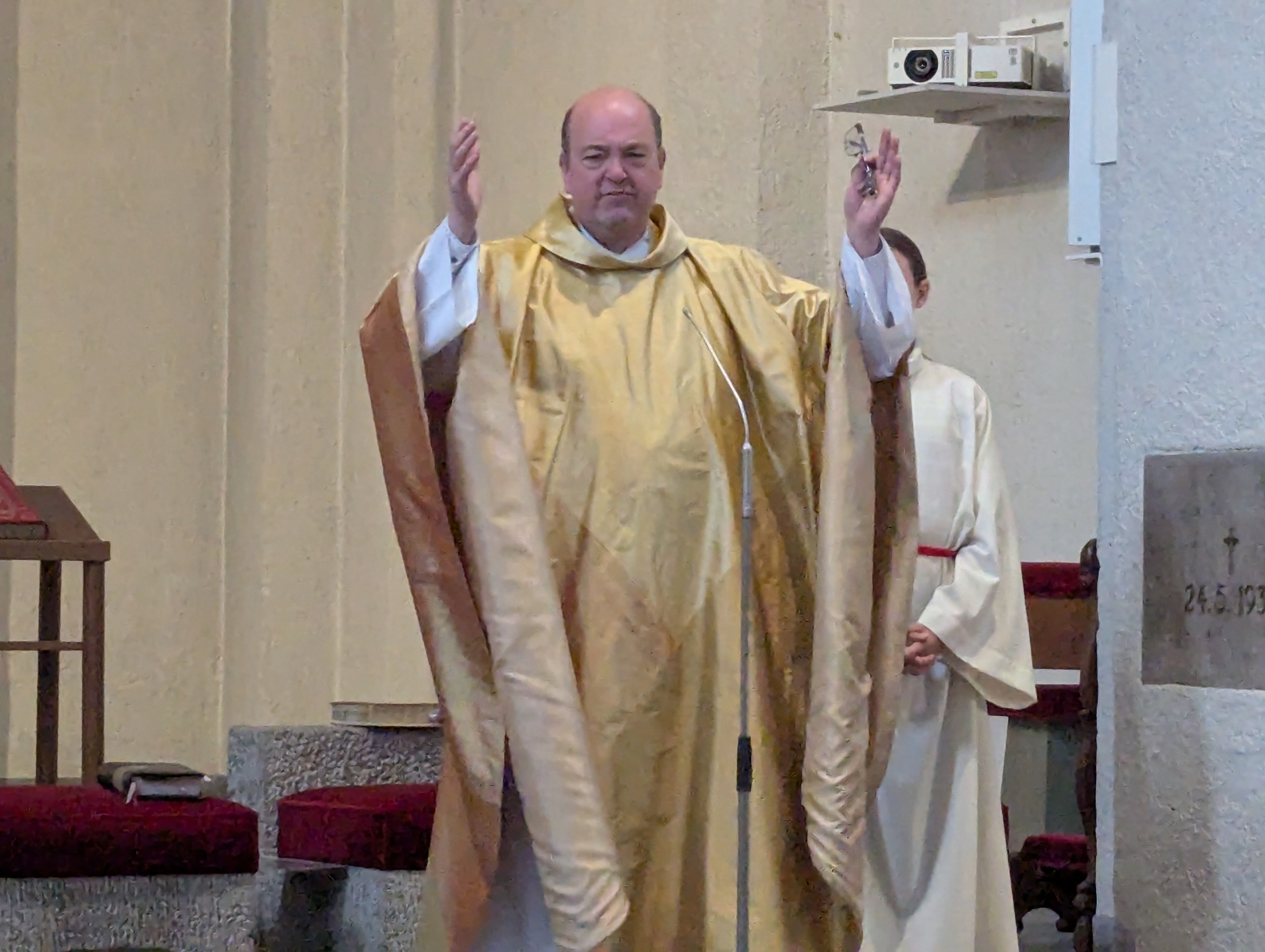 An Christi Himmelfahrt stand dann der Gegenbesuch an und Frau Schäfer besuchte den Gottesdienst in unserer Pfarrkirche. In ihrer beeindruckenden Predigt gab sie einen Einblick in ihre Arbeit, die sie seit 15 Jahren in der JVA Würzburg leistet. Sie baute die Brücke aus, da sie natürlich alleine da war, aber im Geiste von vielen Gefangenen begleitet wurde. Das Leitmotiv war die Verbindung von Himmel und Erde, von Licht und Dunkel. Sie stellte die Frage, wo sich das offene Tor zum Himmel befindet. In sehr persönlichen Worten berichtete sie von ihren Erfahrungen und über Gespräche und Erlebnisse mit Häftlingen.