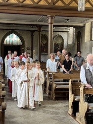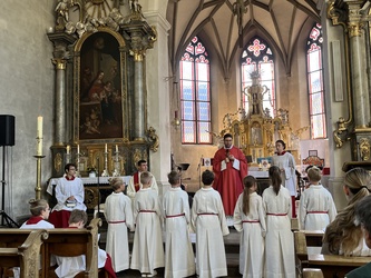 Das Fest der Kirche von Peter und Paul am Sonntag 29.6., dass an die beiden bedeutendsten Apostel Jesu erinnert, wurde auch in unserer Pfarrei zu einem Fest. Sieben neue Ministranten sind bereit ihren Dienst in der Gemeinde aufzunehmen.