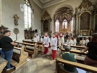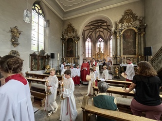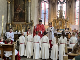 Die Ministranten prägen das Bild im Gottesdienst. Es ist ein großes Geschenk für unsere Pfarrei. Sie sind Teil einer großen Ministrantenschar und gemeinsam unterwegs in einer neuen Gemeinschaft. Getragen und begleitet werden sie von vielen großen Ministranten, die zusammen schöne Erlebnisse, Aktionen und Zeltlager miteinander teilen.