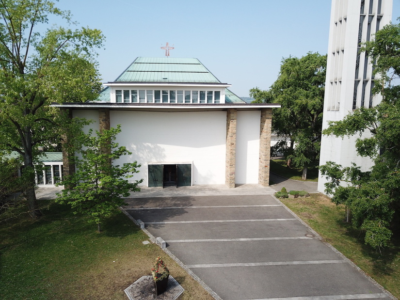 Das Logo der Pfarreiengemeinschaft ist eine Wort-Bild-Marke. Das Wort gibt den Namen der Pfarreiengemeinschaft wieder. Das Bild überträgt die lokale Anordnung "im Osten von Würzburg" auf den Gedanken der aufgehenden Sonne. Das unterstreicht auch die zentrale Farbe des Logos. Seit alters her wird Christus als die aufgehende Sonne bezeichnet. Daher ragt auch das "t" aus "Ost" in die Sonne hinein und verweist auf das Kreuz. Kreuz und Auferstehung liegen eng beieinander. Sie prägen das Leben: von einzelnen Menschen und einer Gemeinschaft.