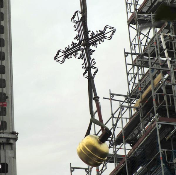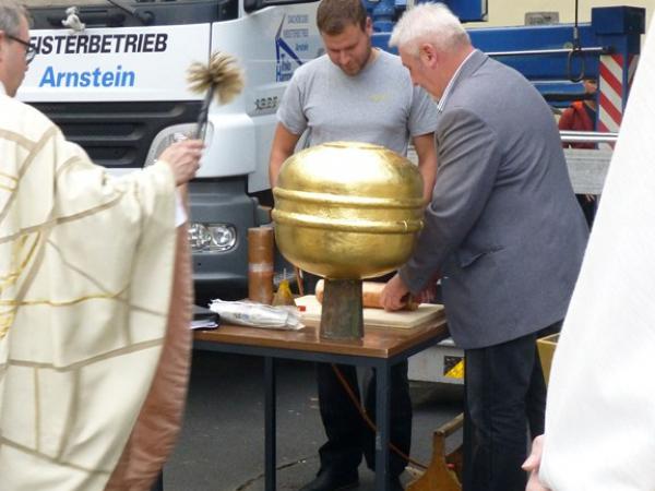 Renovierung des Turmkreuzes und aktuelle Befüllung der Turmkugel der St. Nikolauskapelle